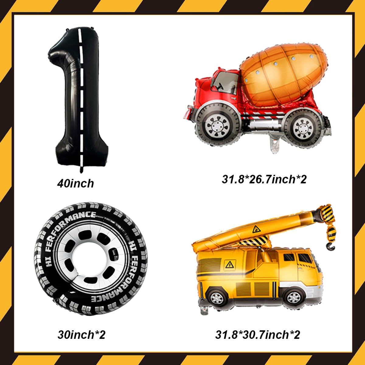 1st Birthday Decorations for Boys Construction Balloons 40inch Number 1 Balloons Truck Foil Balloon for Construction Birthday Party Decorations Supplies