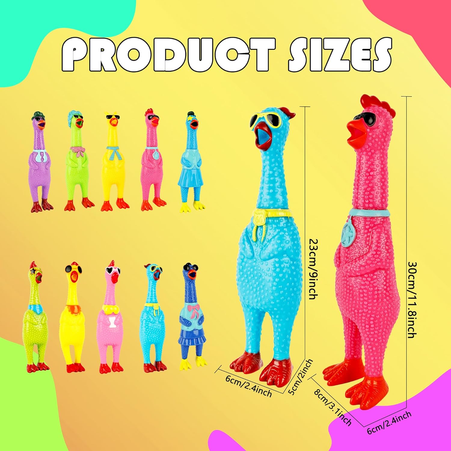 10 Pcs 9 Inch 12 Inch Rubber Chicken Dog Toy Squeaky Screaming Chicken Dog Rubber Squeeze Squeaky Prank Noise Maker Chew Toy for Pets, 2 Sizes