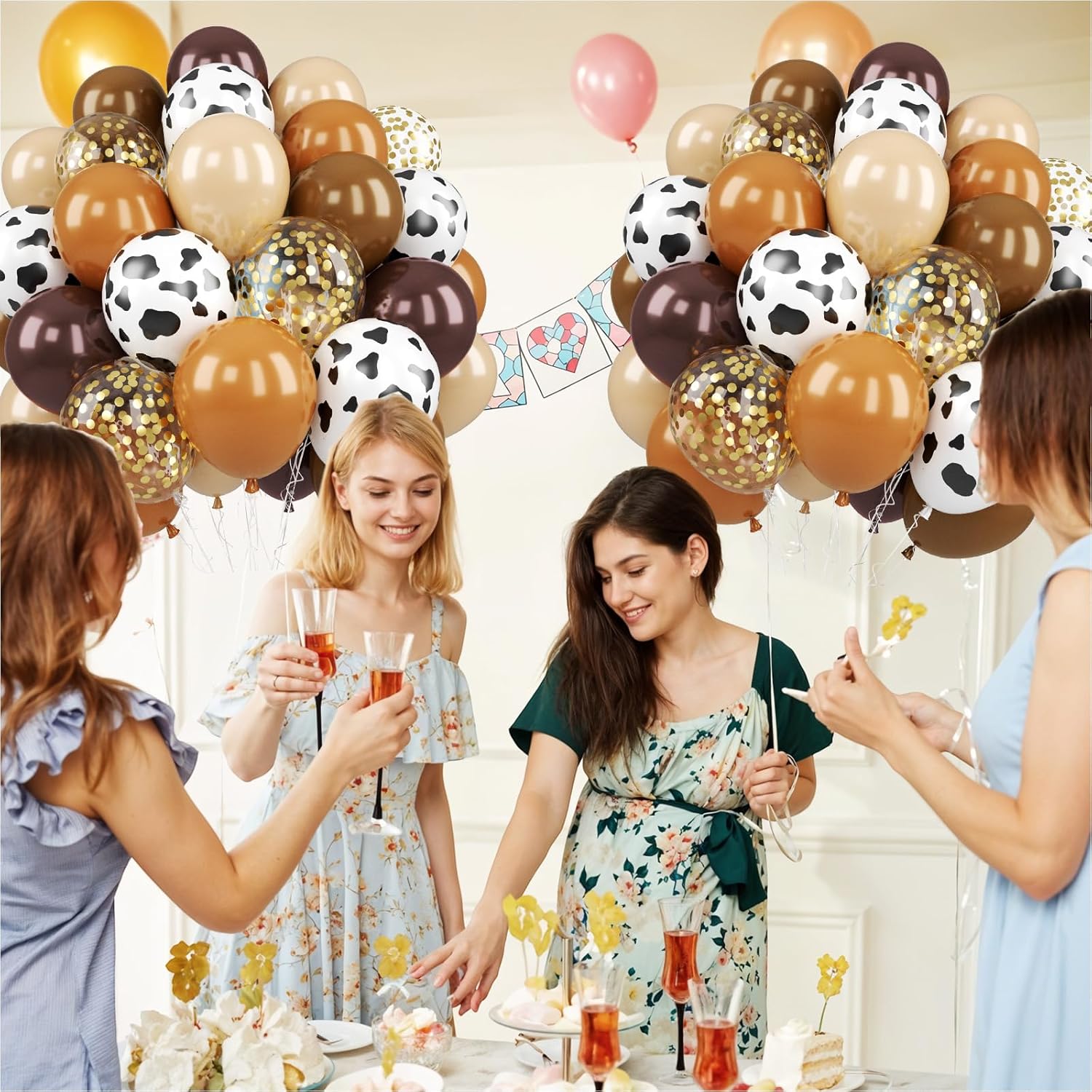 - What You Get - The neutral balloons include 50 balloons, 6 distinct colors: dark brown balloons x 10, retro khaki balloons x 10, light brown balloons x 10, retro apricot balloons x 10, gold confetti balloons x 4, cow printed balloons x 6. Accompanying by a 10m ribbon. These striking and captivating hues will beautifully enhance your memorable and enjoyable moments!