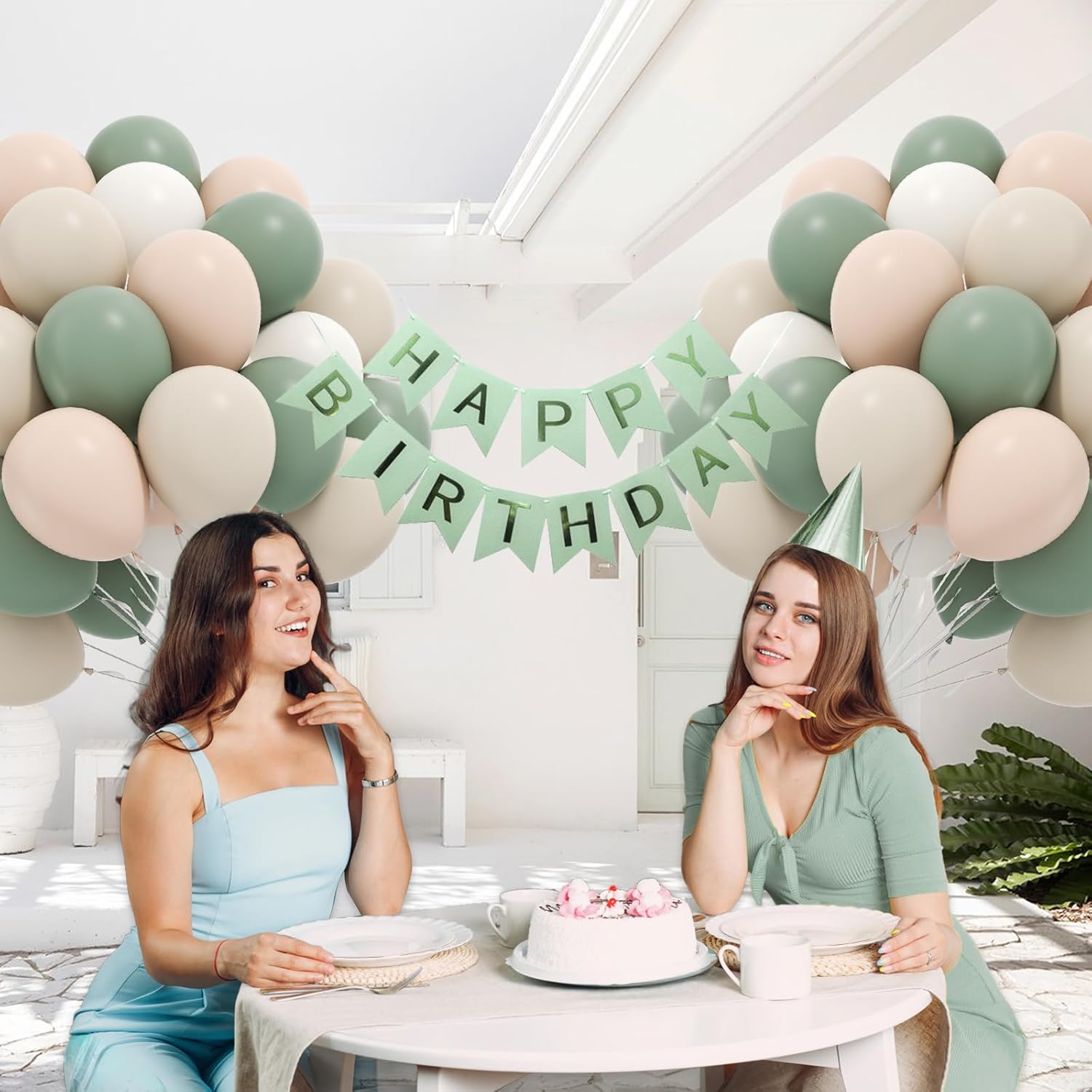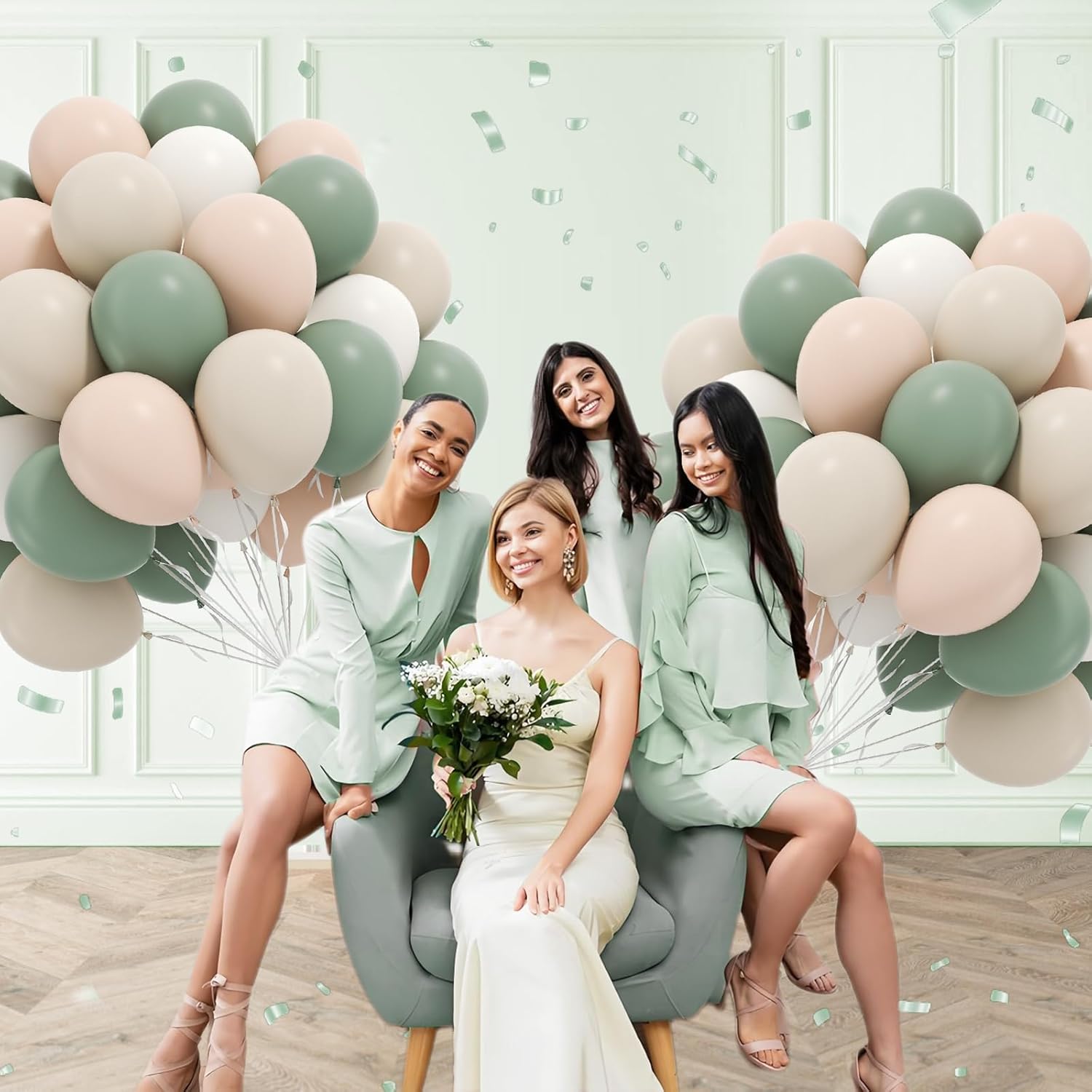 - What You Will Get: The package includes 12inch sage green balloonsx25, 12inch nude balloonsx10, 12inch sand white balloonsx15, 12inch white balloonsx10, glue dotsx20, white ribbonx1