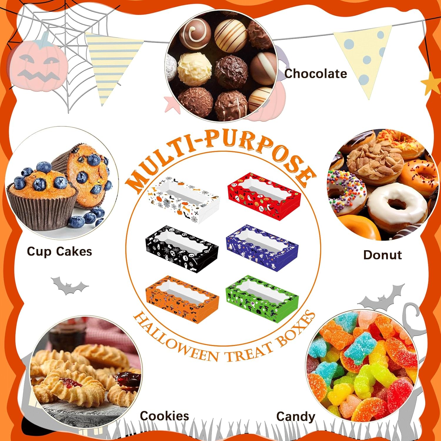 24 Pack Halloween Large Treat Boxes, Trick or Treat Candy Boxes with Window Halloween Party Favors Gift Goodie Boxes Supplies for Cookie Biscuit Donuts Dessert Cupcake Pie