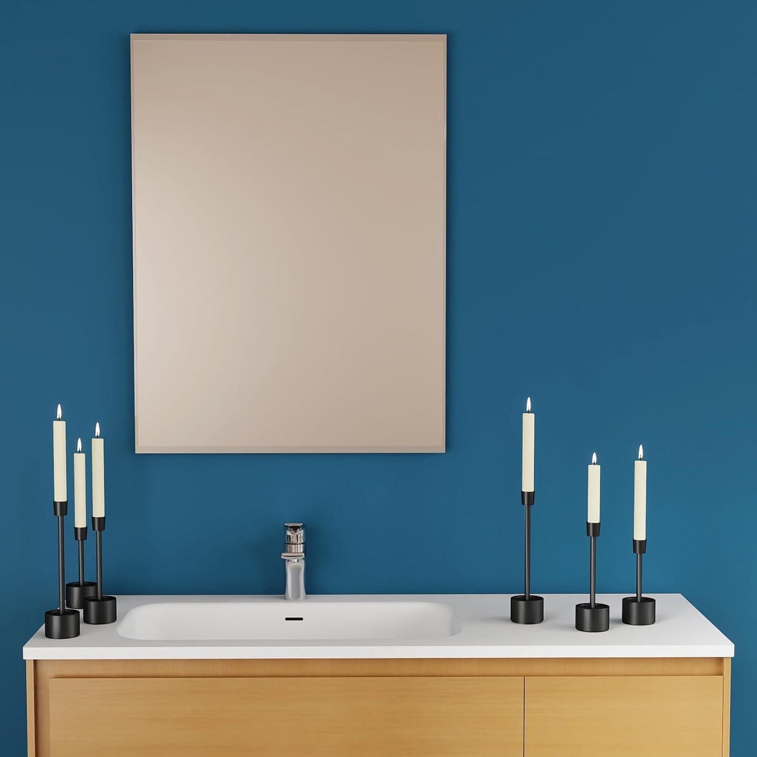 - UNIQUE CANDLE HOLDER DESIGN : Inverted trapezoid cup (wider top, narrower bottom) fits most standard taper candles. Elegant and modern for tabletop, centerpiece, or shelf decor