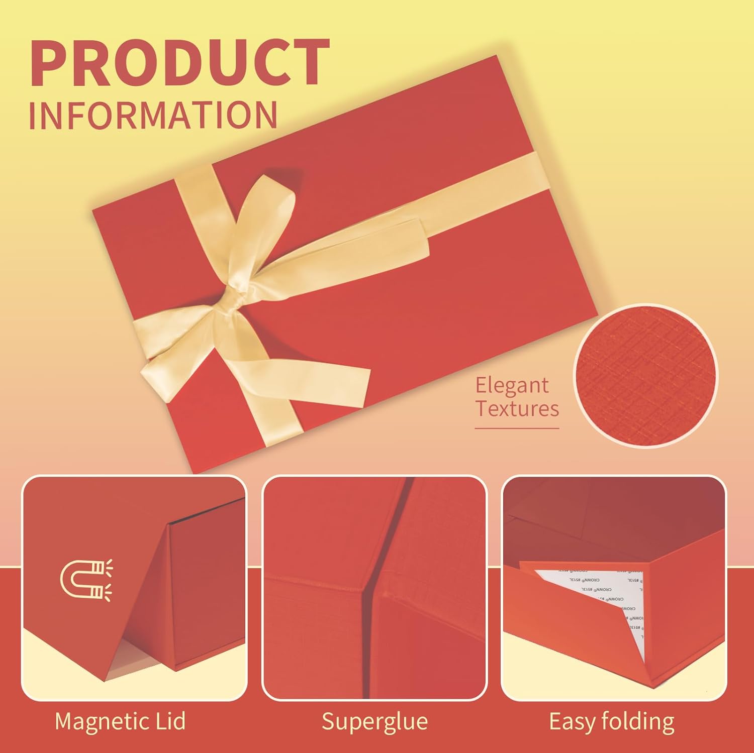 - FRIENDLY DESIGN: This red gift box has a sturdy magnetic closure that can be easily opened and closed again and again. The surface of the box is printed with special texture and elegant shape.