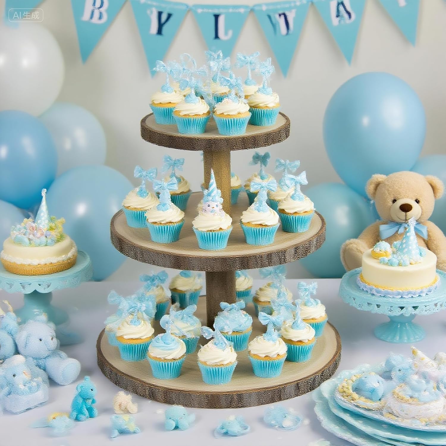 - Sturdy 3-Tier Wooden Cupcake Stand: Perfect for displaying cupcakes, this rustic dessert stand features a durable wooden structure and a charming farmhouse design, ideal for weddings, birthdays, and baby showers.