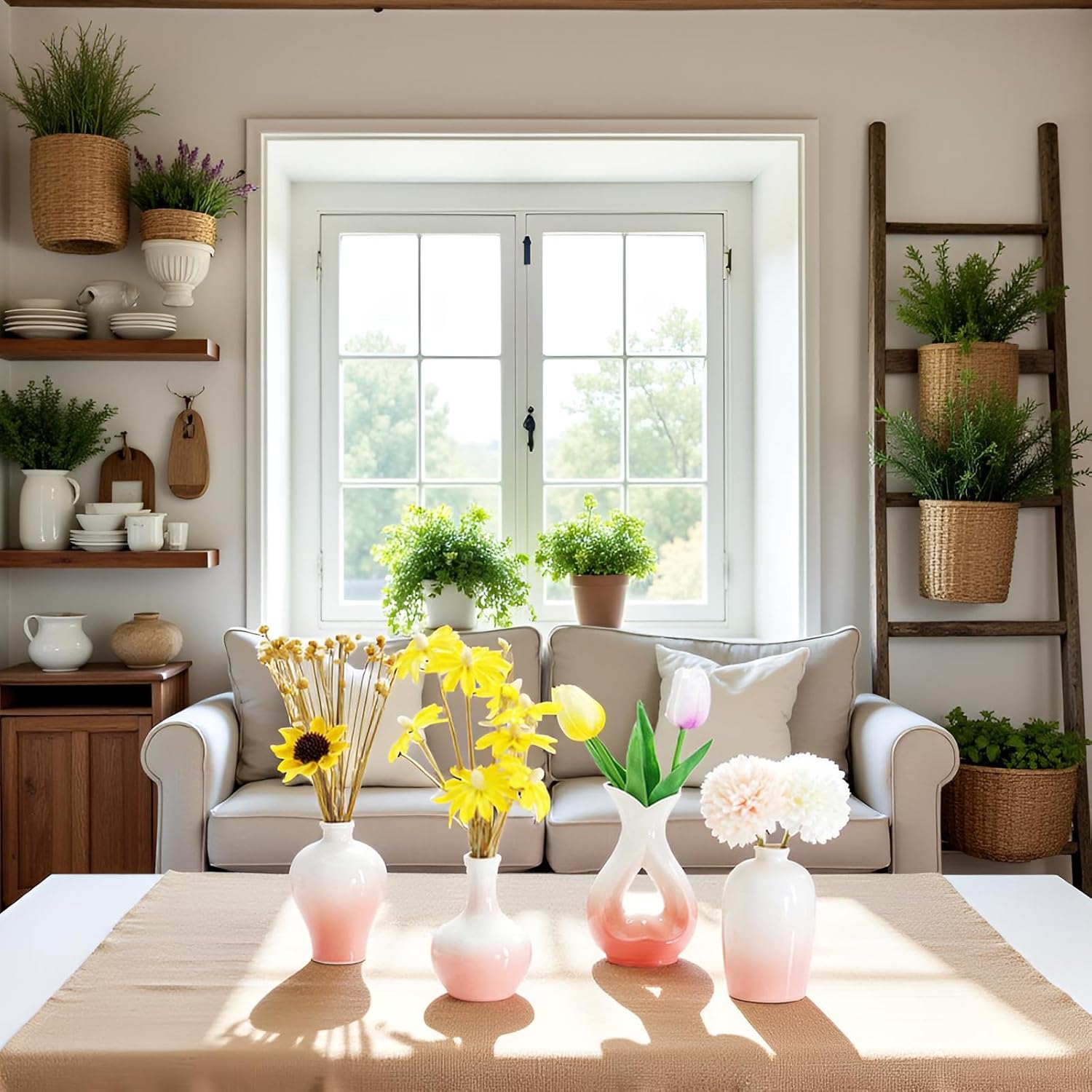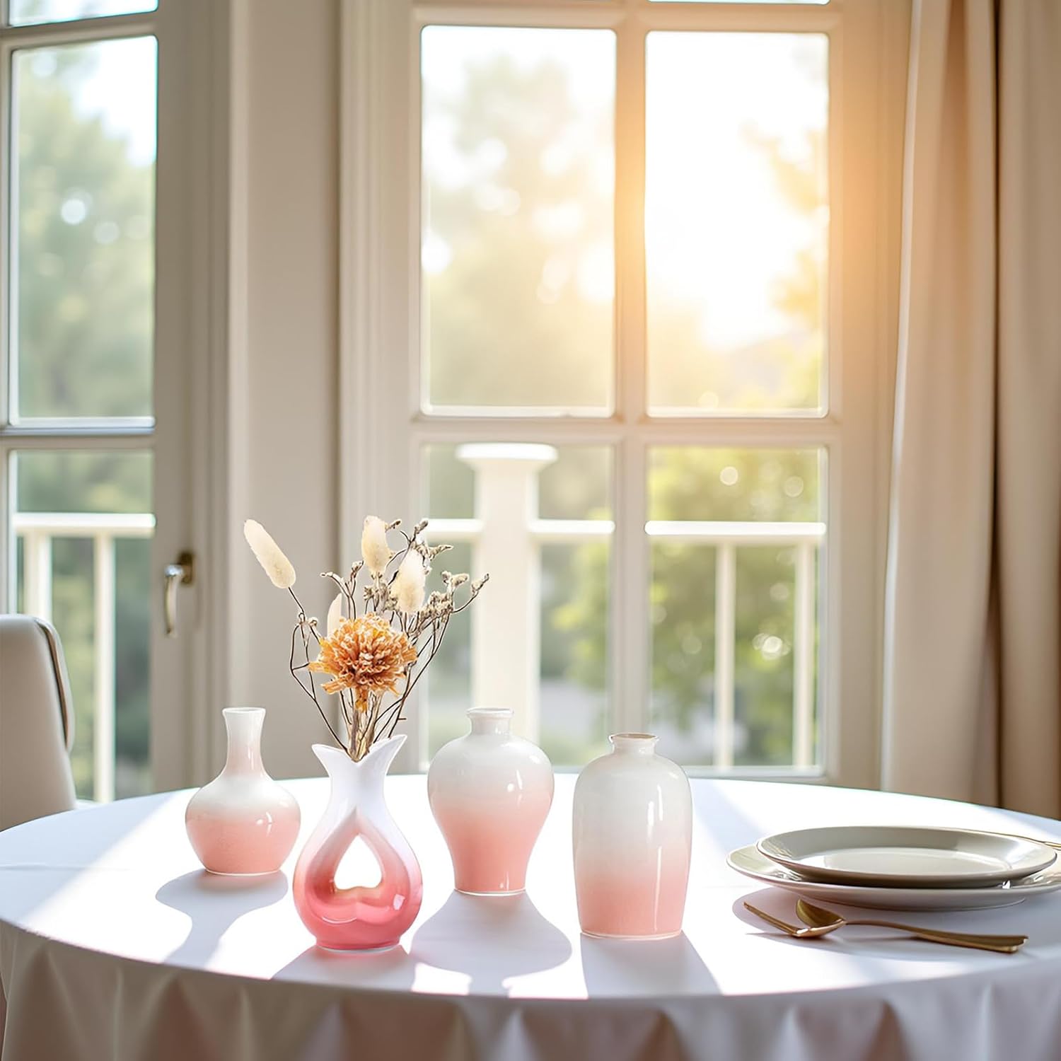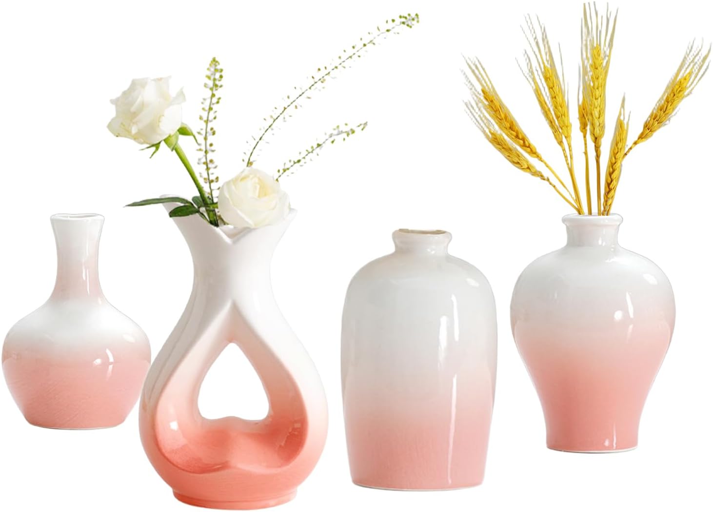 Small Ceramic Vases Decorative 4pcs Pink-White Modern Farmhouse Vase Pottery for Bouquet Pampas Grass Dried Fresh Flowers Kitchen, Bedroom, Bathroom, Entryway, Centerpieces Home Decor Jarrones para