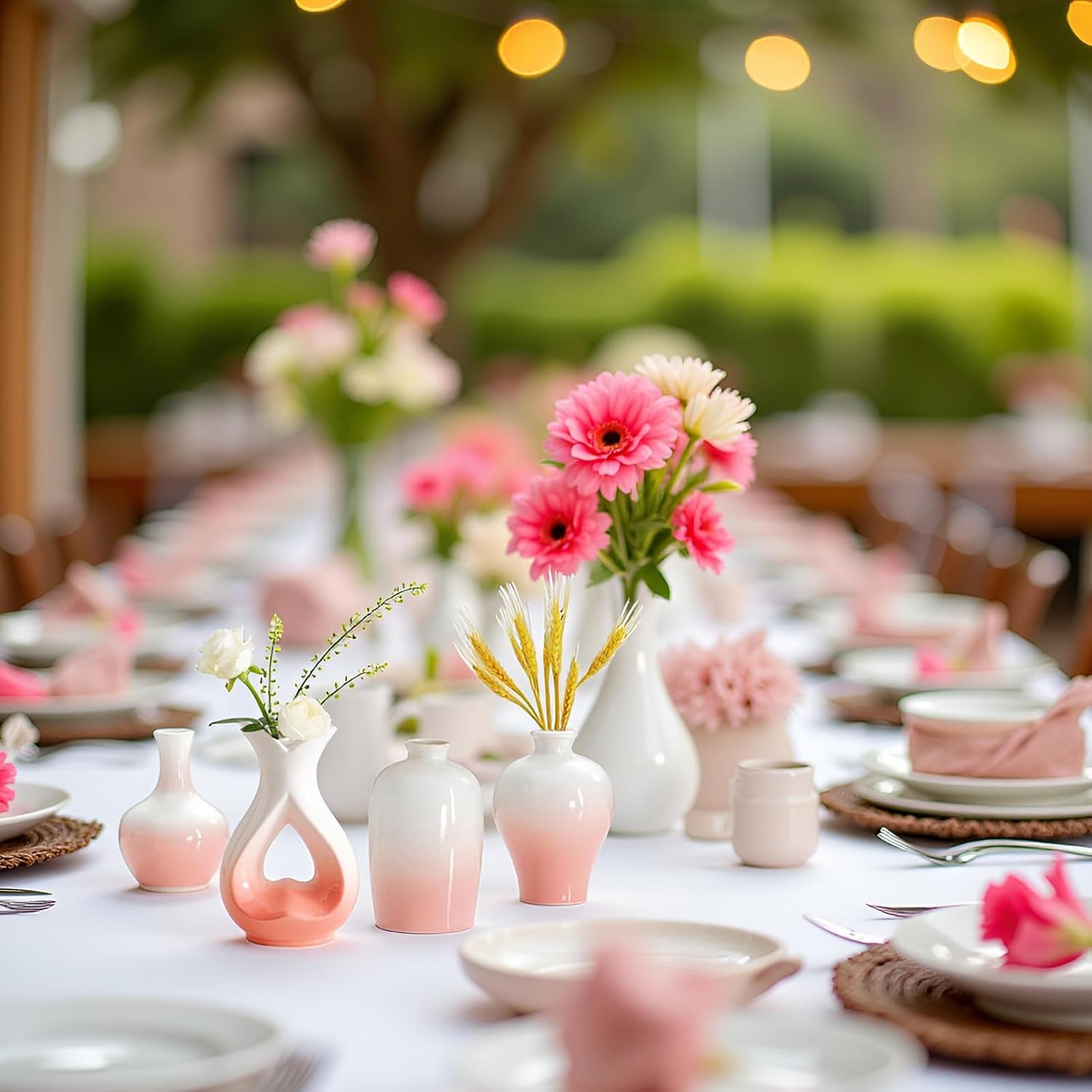 - Elegant 4-Piece Set - Four 6-inch matte ceramic vases in blush pink & creamy white, perfect for creating cohesive home decor or table centerpieces. The vases for centerpieces bulk are not only fit for own use, but also fit for anniversaries, mother's day, thanksgiving, housewarming, anniversaries, weddings, birthdays or housewarming, 16th birthdays, baby showers, family gatherings and other parties as gifts, give friend or family member as a gift for a compliment.