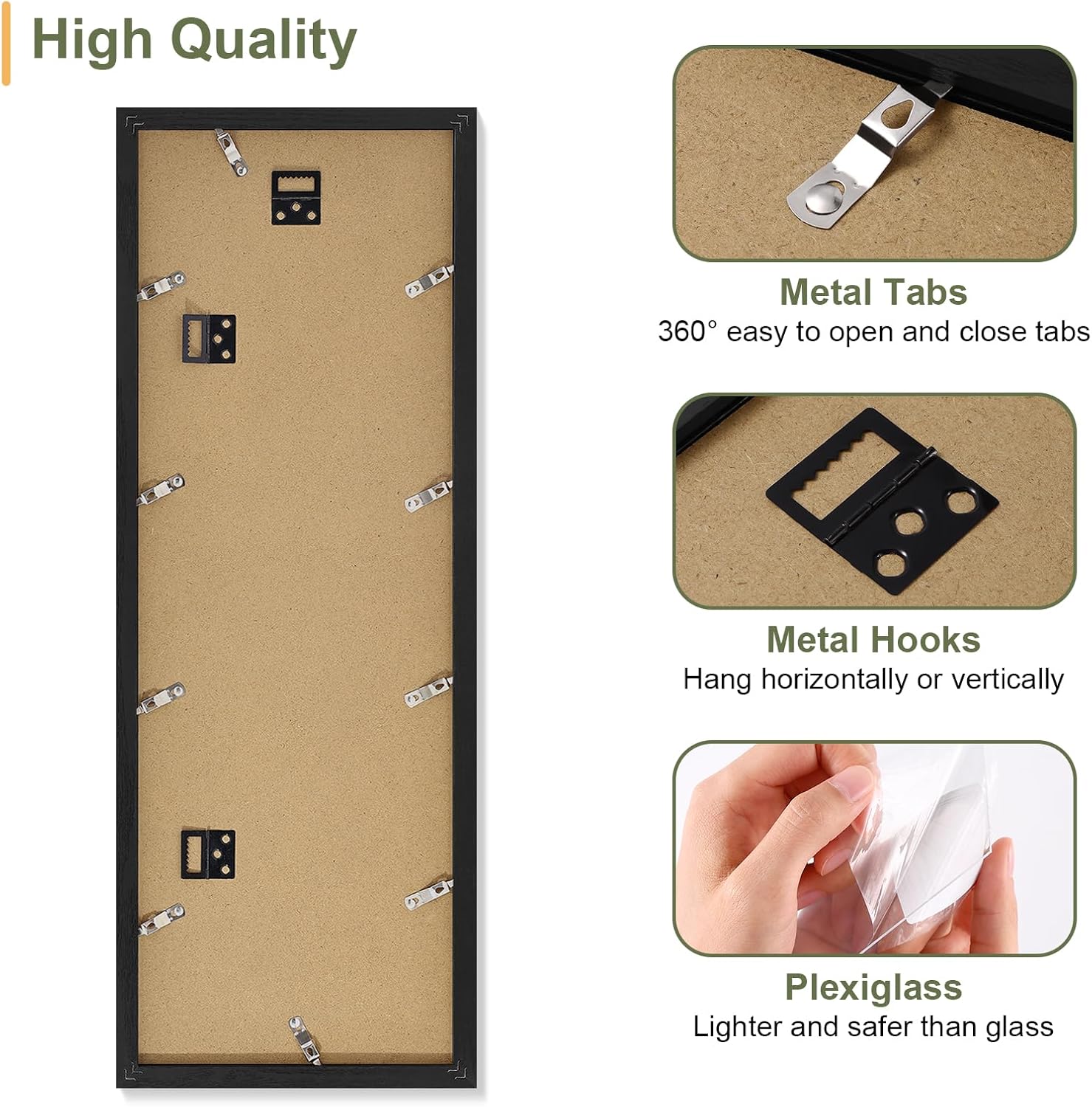 - Perfect Photo Fit: The 8x24 collage frame holds five 4x6 photos with mat or one 8x24 photo without mat. Each 4x6 opening is designed 0.5 inches smaller for a secure grip in this classic black frame
