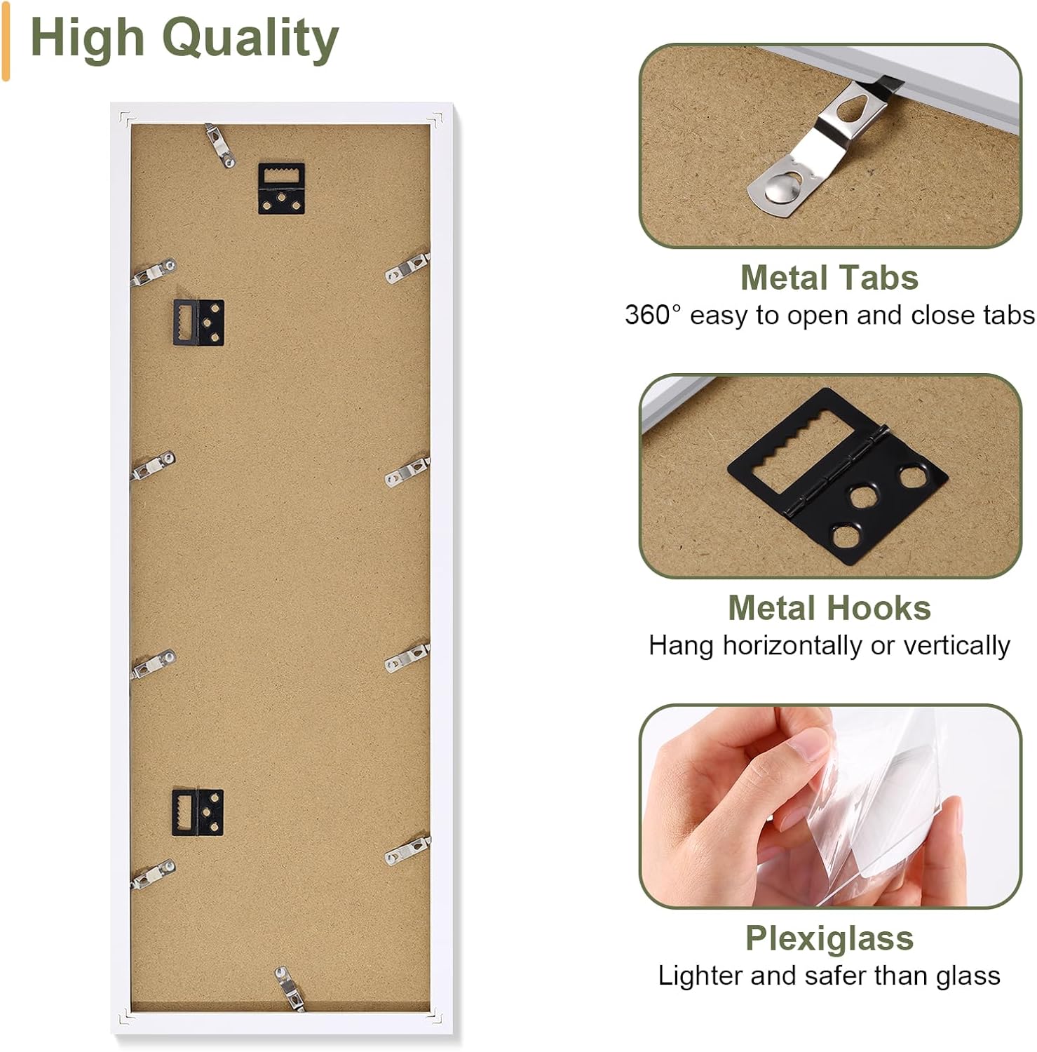 - Ease of Use: The collage frame features a quick-release back panel with flexible tabs for effortless photo switchs in seconds. Pre-installed hooks allow instant wall mounting horizontally or vertically