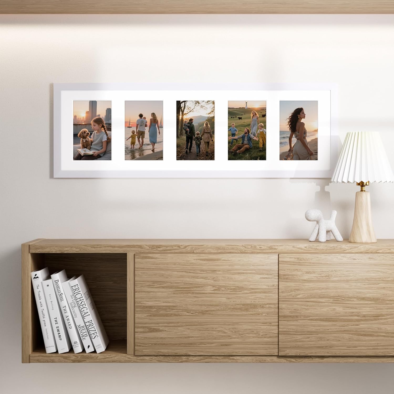 Vittanly 8x24 Collage Picture Frame, Displays 5Pcs 4x6 Pictures with Mat, Picture Frames Collage Wall Decor for Horizontal or Vertical Display, White, 1 Pack