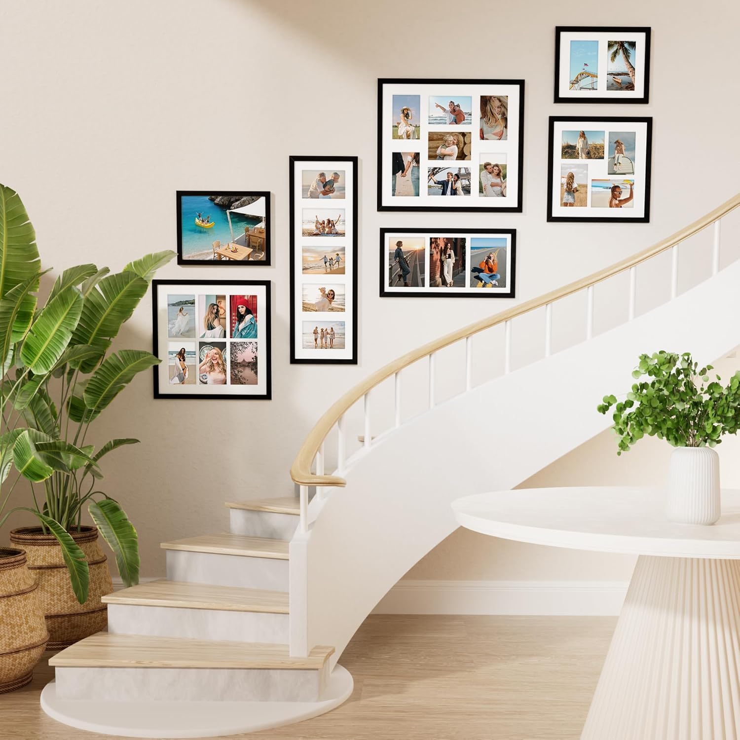 - Ease of Use: The collage frame features a quick-release back panel with flexible tabs for effortless photo switchs in seconds. Pre-installed hooks allow instant wall mounting horizontally or vertically