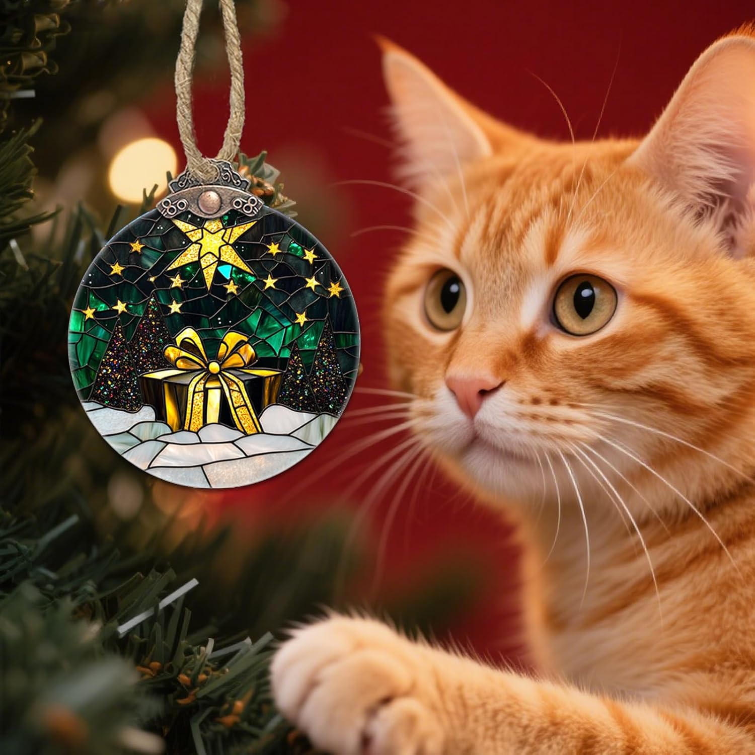 - Stained Glass Window Hanging: The christmas decor size is 3.1x3.5 IN, infuses vibrant colors and holiday magic. Perfect for adorning Christmas trees at home, or as a standout gift. Instantly elevates festive decor, creating a warm, whimsical atmosphere that delights all who see it.