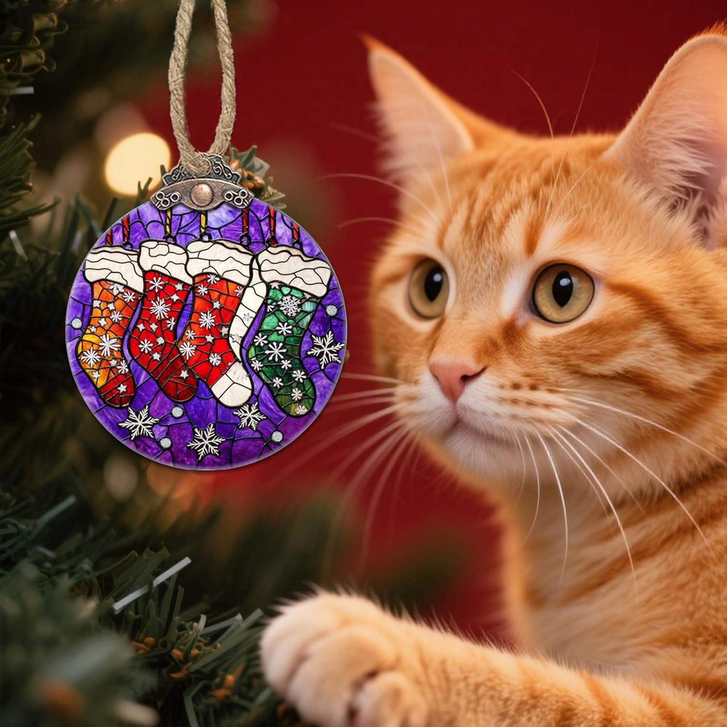 - Stained Glass Window Hanging: The christmas decor size is 3.1x3.5 IN, infuses vibrant colors and holiday magic. Perfect for adorning Christmas trees at home, or as a standout gift. Instantly elevates festive decor, creating a warm, whimsical atmosphere that delights all who see it.