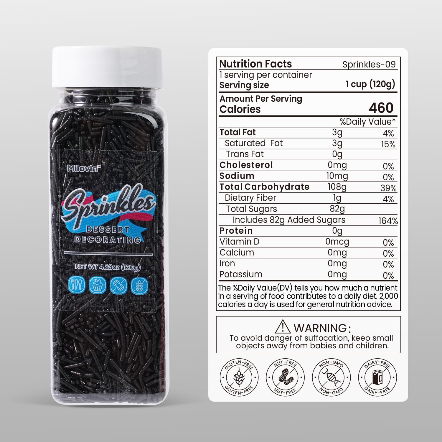 Edible Black Sprinkles, Jimmies Sprinkle, Black Sprinkles for Baking, Cake, Cupcake, Cookies, Donut, Perfect for Halloween(120g/4.23oz)