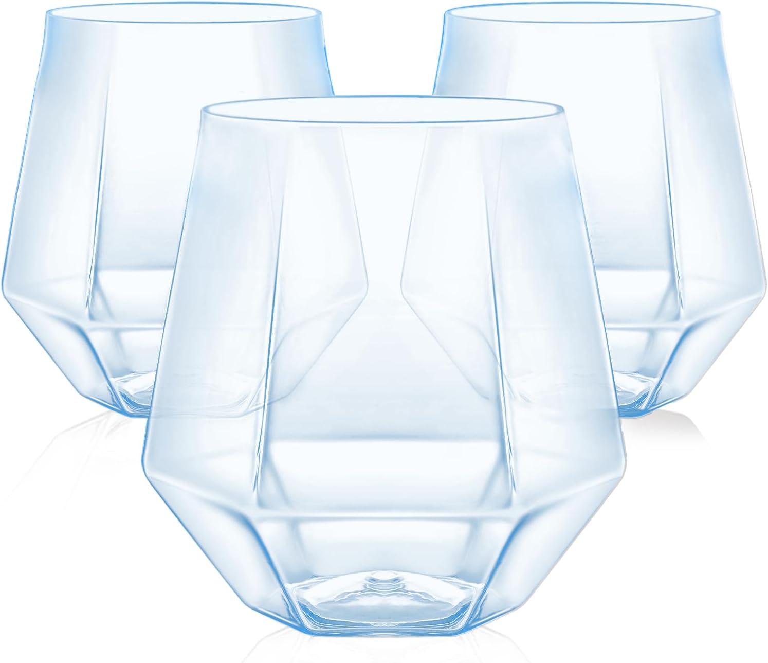 40 Pcak Plastic Stemless Wine cocktail Whiskey Champagne Glasses, 12 Oz Disposable Unbreakable Cups for Party Bars Wedding Tasting (Blue)