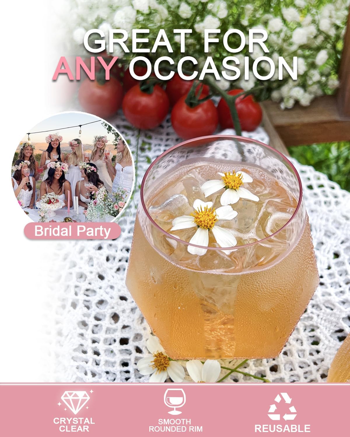 - ✨Elegant Design✨The disposable wine glasses by Asdfada feature an elegant pink color that adds a touch of sophistication to any setting. Whether you're hosting a formal dinner or a casual get-together, these plastic wine glasses will elevate the look of your table and impress your guests.