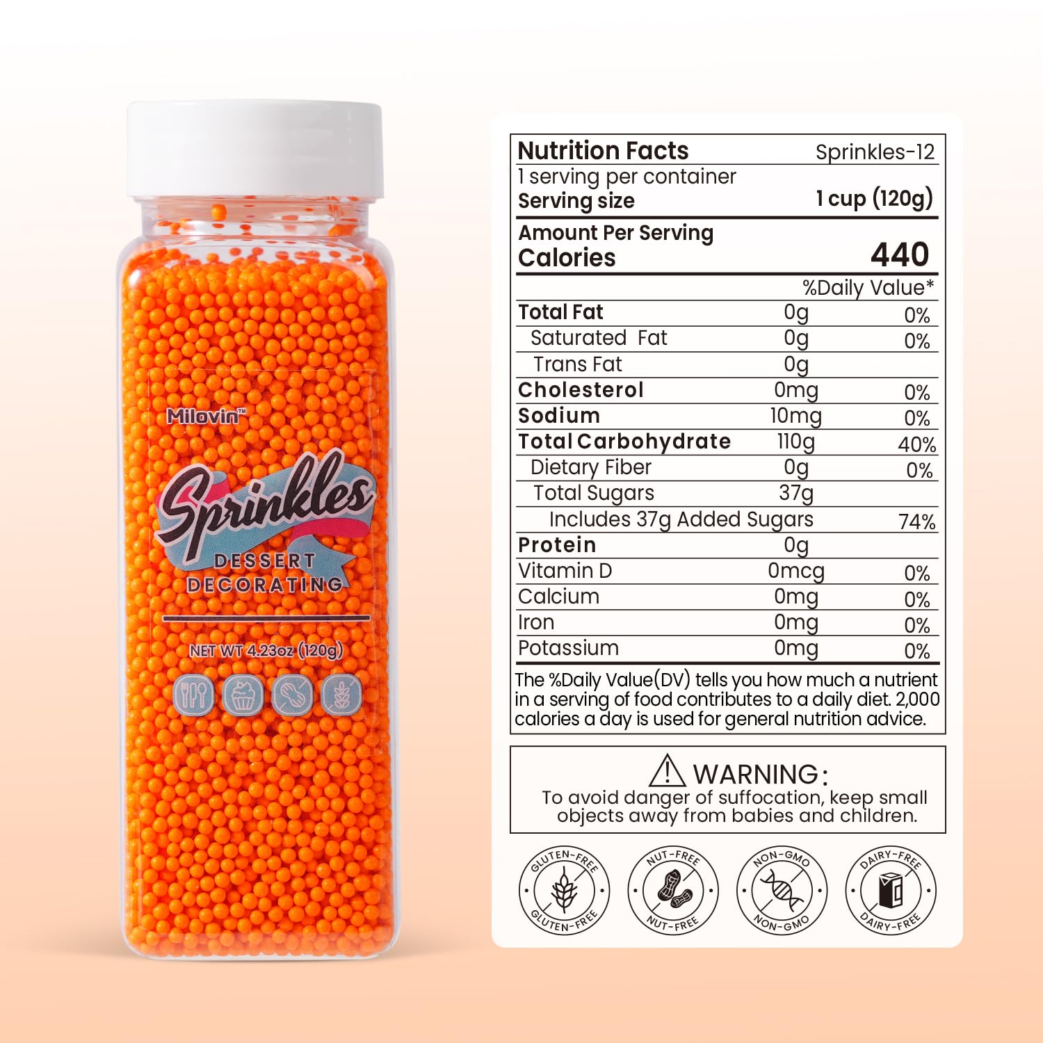 - Orange Nonpareils Sprinkles: A bottle of edible orange sprinkles(120g/4.23oz), whether it's cakes, cupcakes, cookies, ice cream, cake pops, brownies, or any dessert you can dream of; our orange sprinkles are your go-to for that extra dash