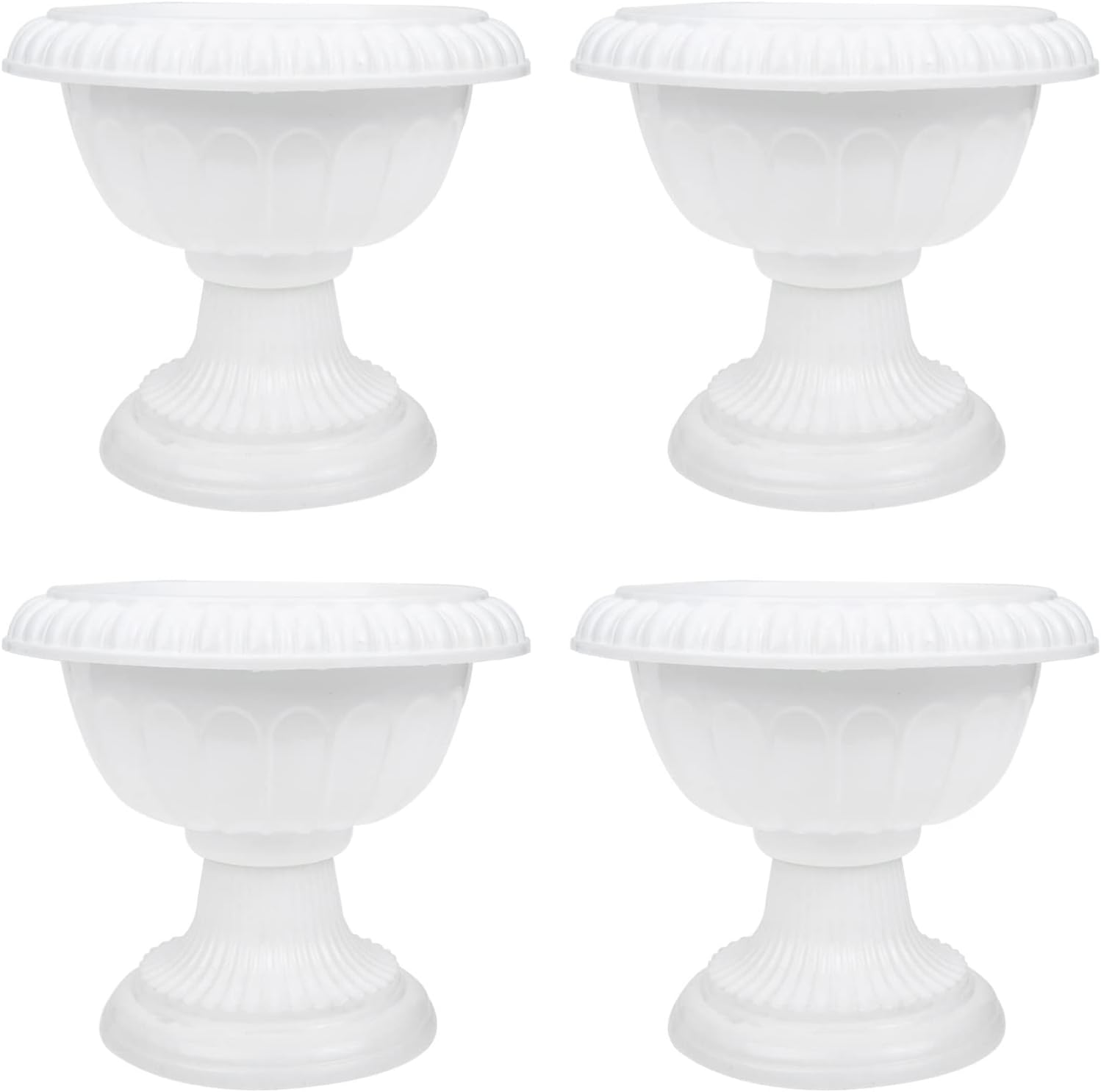 4pcs Mini Roman Style Flower Pots, Plastic Wedding Flower Containers, Decorative Pedestal Planters for Home, White, 6.29 x 6.29 x 5.51 Inch