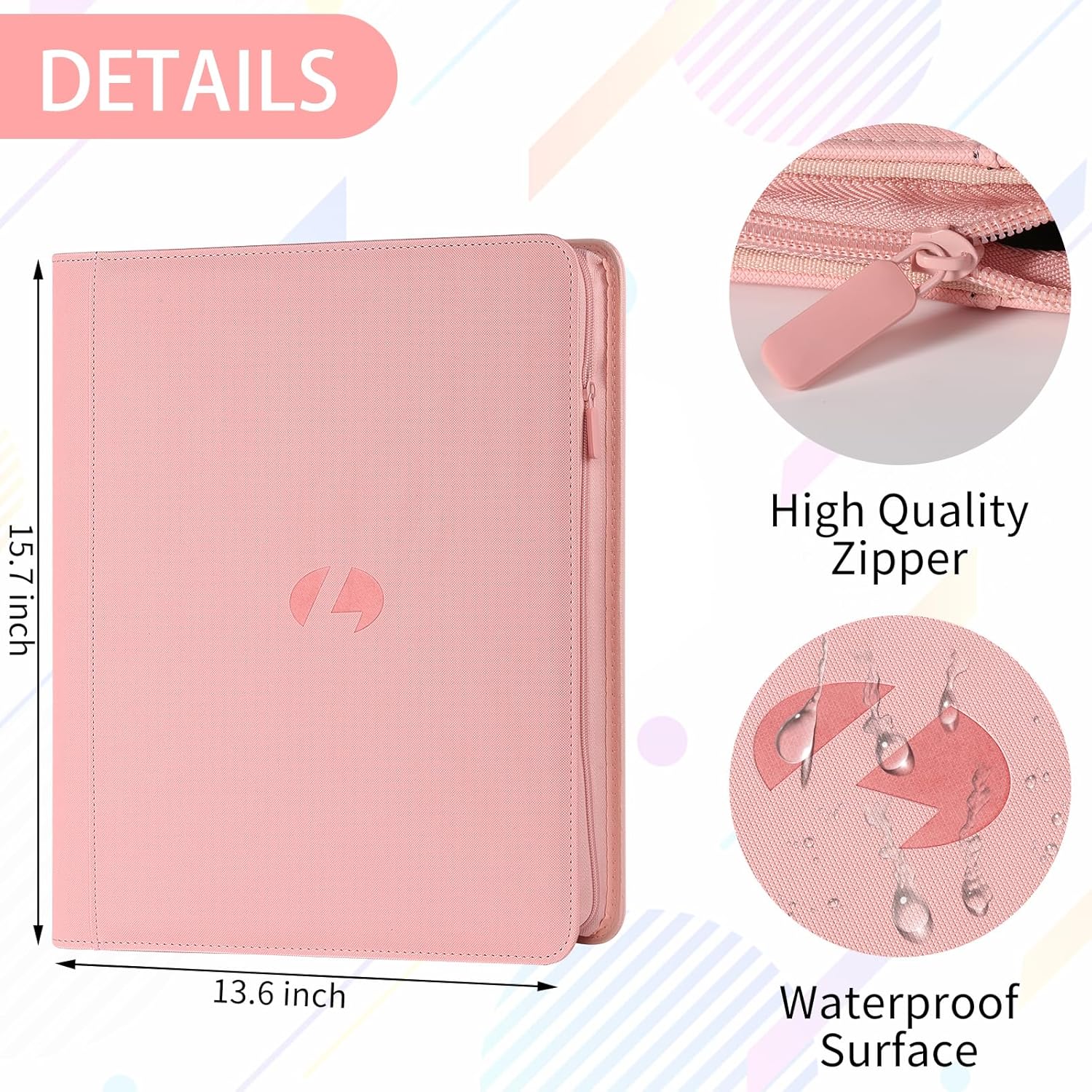 Toploader Binder,Holds 288 Toploaders,9 Pocket Double-Sided Top Loader Binders with Sleeves for 3 x 4'' Toploaders, Card Holder for Trading Cards or Sports Cards (Pink)