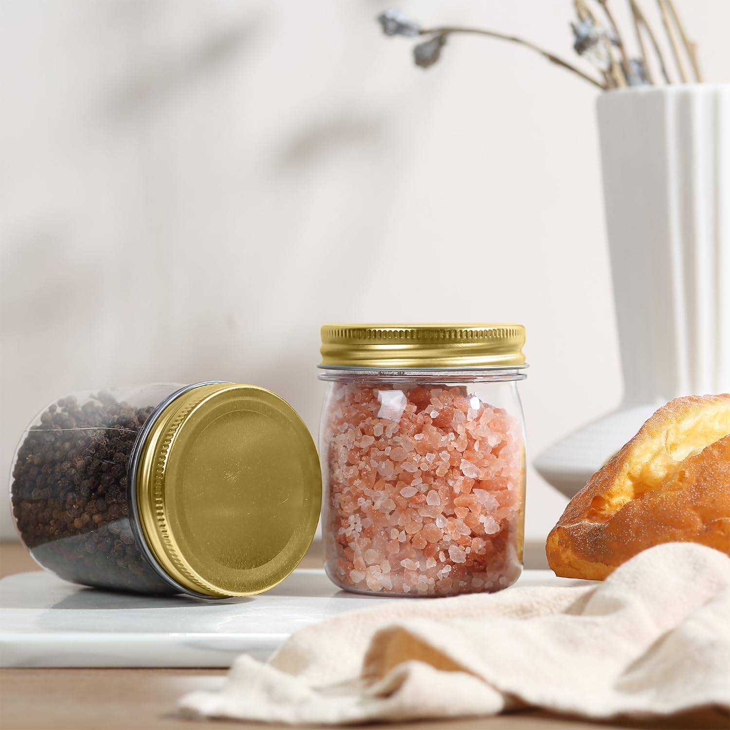 novelinks 8 oz Clear Plastic Jars with Screw-On Lids - BPA-Free Refillable Storage Containers for Slime, Spices, Crafts, Kitchen & Home Organization (48 Pack,Gold)