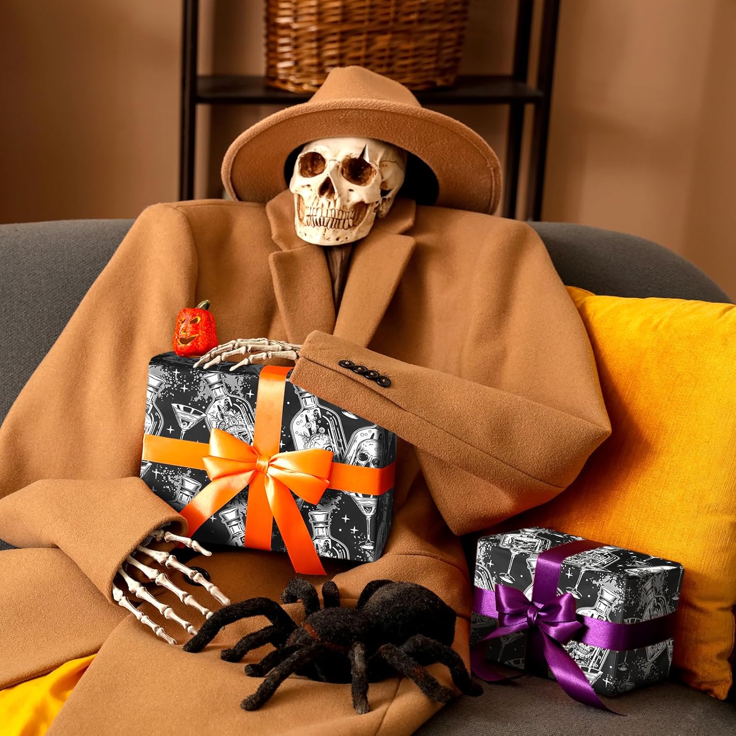 - Mini Roll Size: Measures 17 inches wide by 16.4 feet long—ideal for spooky gifts, Halloween favors, and gothic party packaging.
