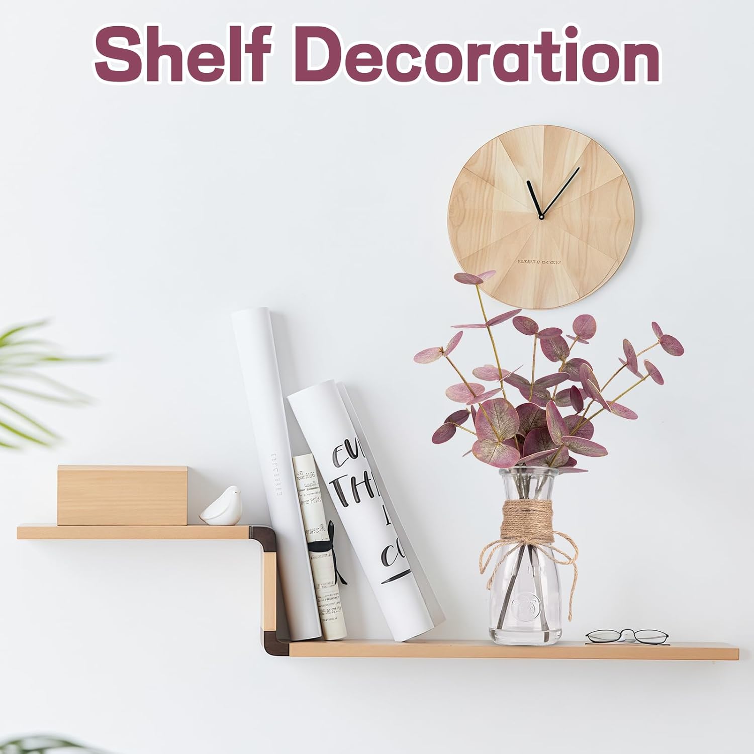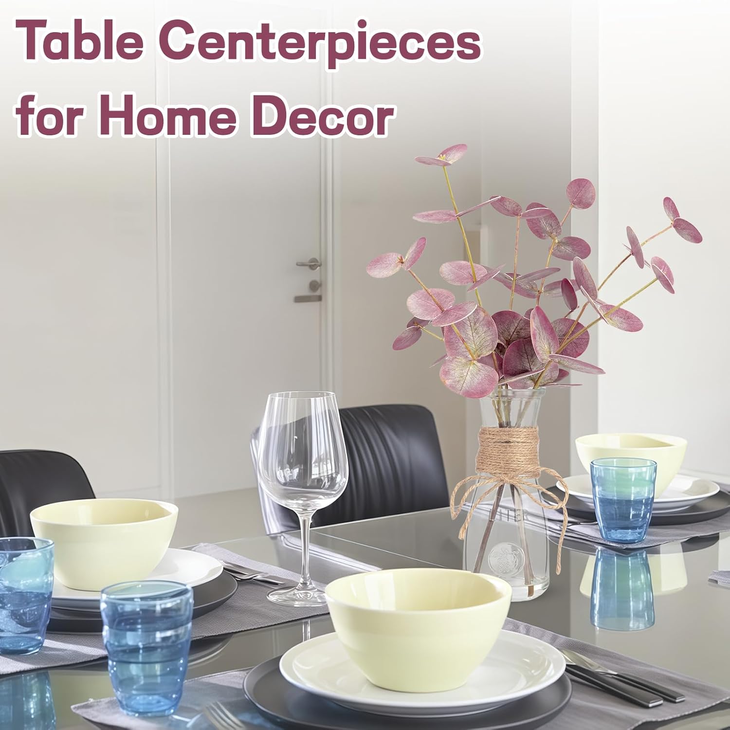 - 【Faux Plant Stems for Vase】: Each eucalyptus leaf is handcrafted and comes with a clear glass vase (Total Height: 15")). The acrylic water ensures that the eucalyptus leaf adheres well to the glass vase, so you don't have to worry about it falling off or spend time arranging them.