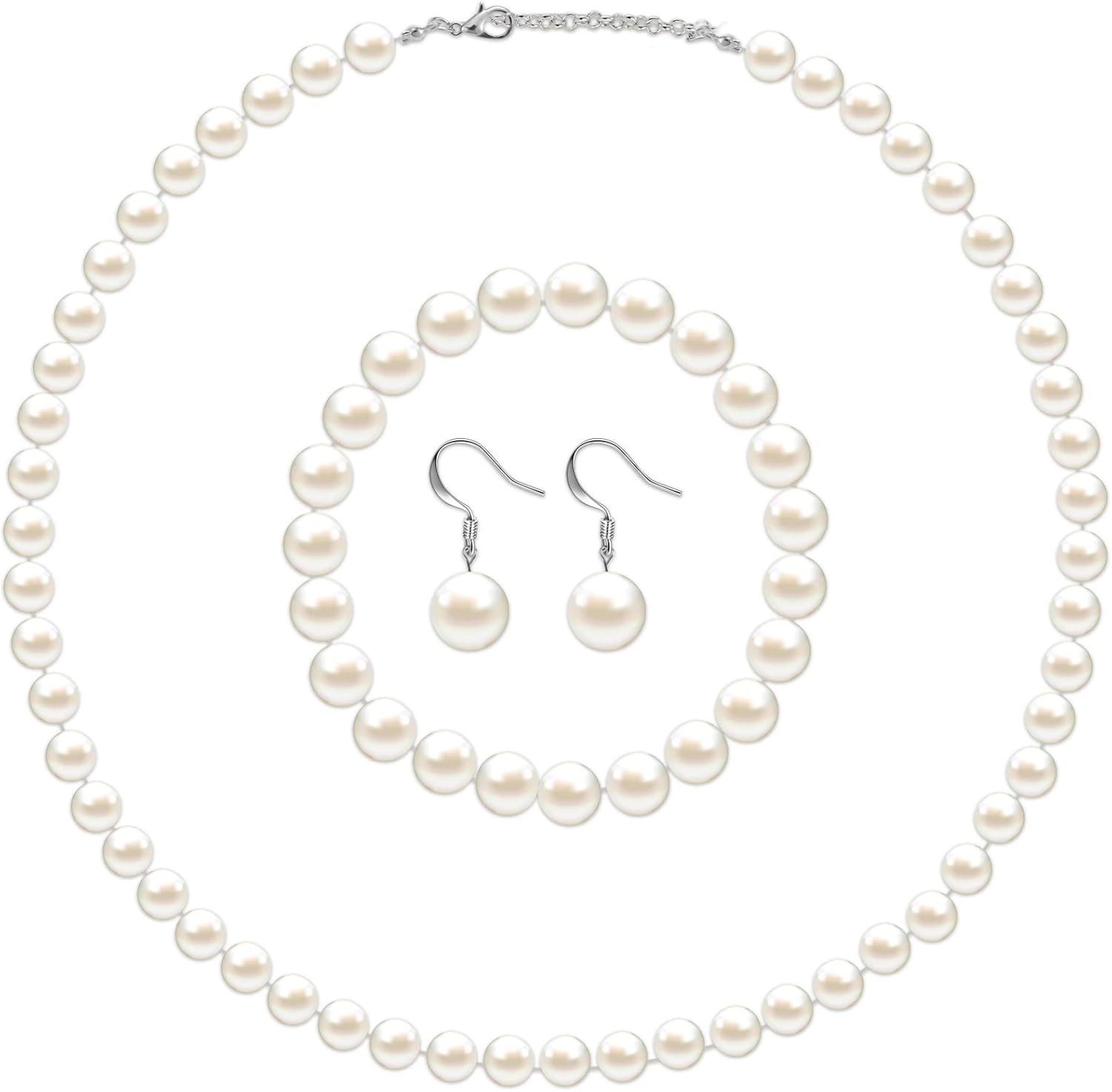 - Manifest the Elegance and Charm of Women: wear our delicate faux pearl necklace, matching pearl earrings, and stretch beaded bracelet, delicate jewelry always shows the elegance and charm of women, making you look elegant, confident, shiny and charming, and bringing you a good mood