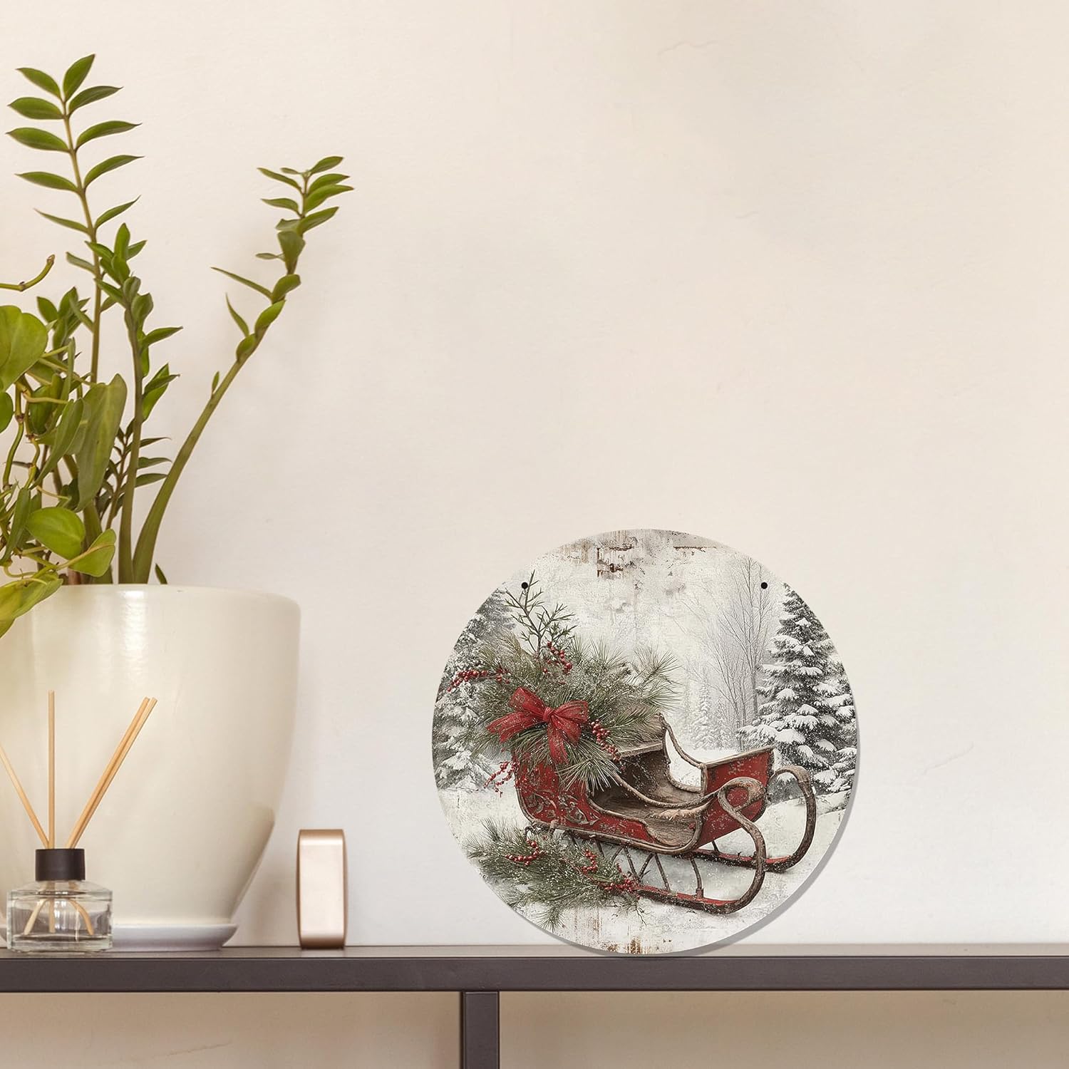 CGBHW Christmas Winter Sleigh Wooden Sign, Vintage Farmhouse Country Cozy Winter Xmas Hanging Sign Wall Decor for Home Bedroom Living Room, Holiday Snowy Door Decor 12 x 6 Inch