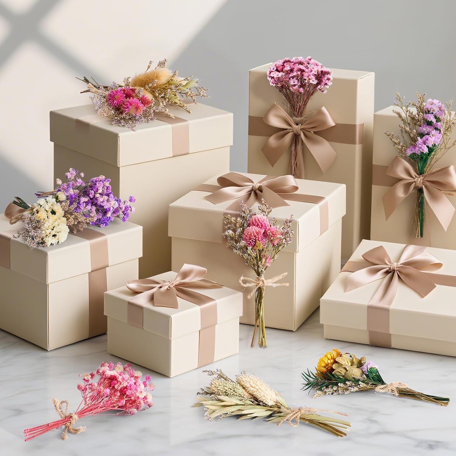- Low Maintenance, Long Life: Packaged securely in protective cartons, these dried flower bouquets are easy to care for—just avoid direct sunlight and use cold air to fluff them back into shape. Enjoy long-lasting decor without the need for watering or trimming