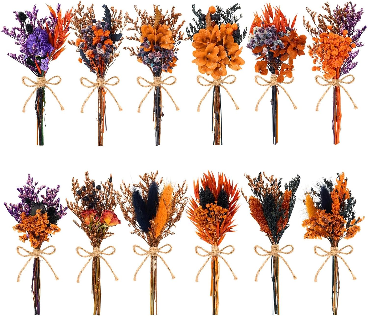 - Abundant Assortment of Bouquets: Includes 11 dried bouquets featuring a mix of natural flowers in assorted colors and styles. Perfect for decorating multiple spaces, crafting DIY floral arrangements, or adding rustic charm to weddings, parties, and seasonal events