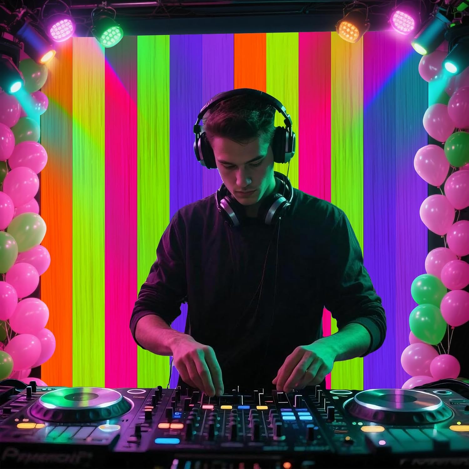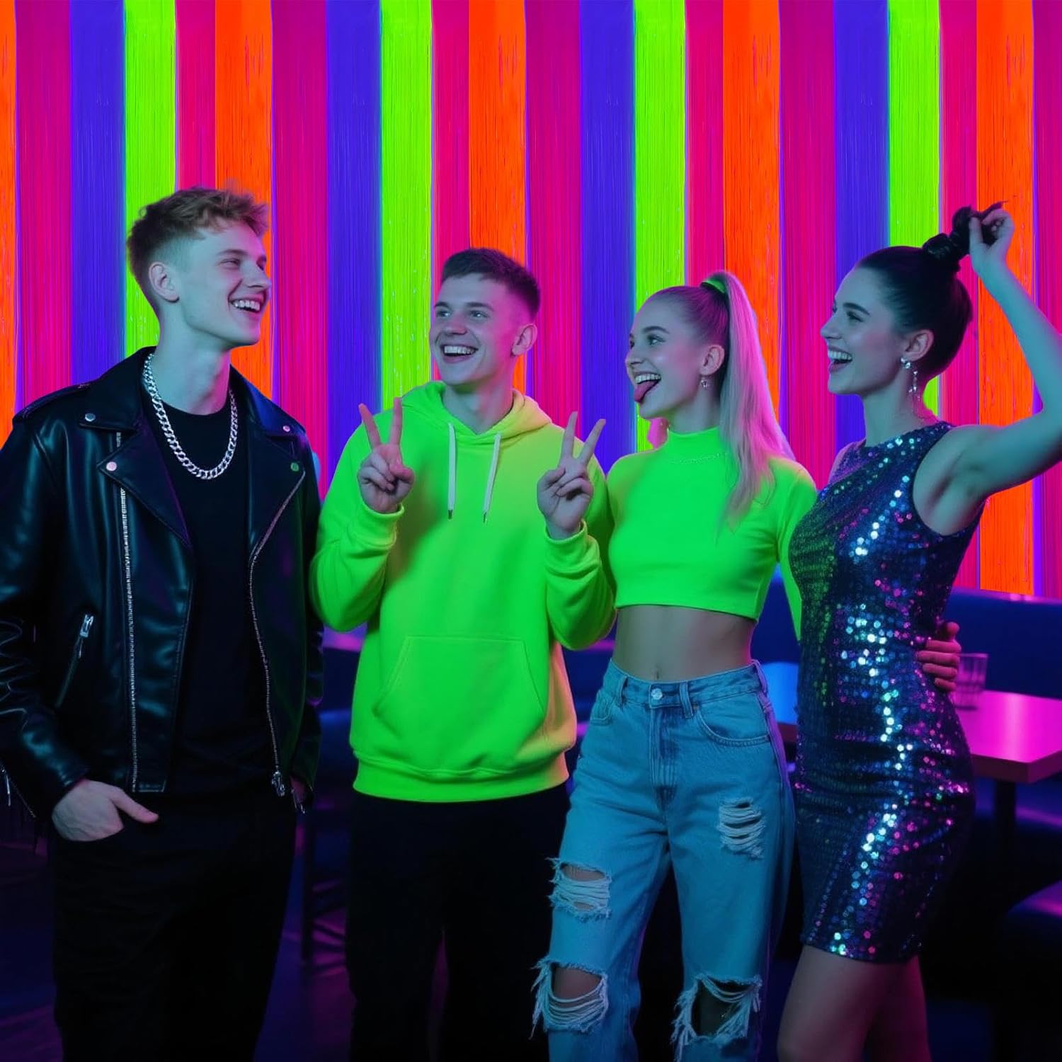 - NEON PARTY DECORATIONS: Our unique neon fluorescent tinsel foil fringe curtains are the perfect photo backdrop for neon birthday party decorations Bachelor party decorations and home decor. You will be amazed at the colorful atmosphere and view they create.