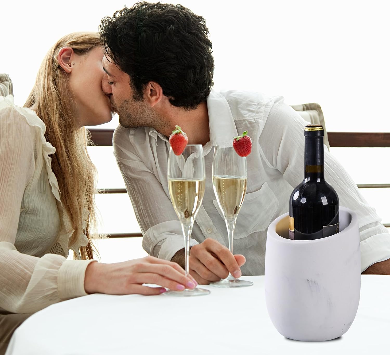 White Marble Textures Wine Chiller Bucket – 750ml Resin Cooler for Wine & Champagne Bottles, Party Bar Cart Decor – Keeps Drinks Cold, Unique Gift for Wine Lovers, Housewarming