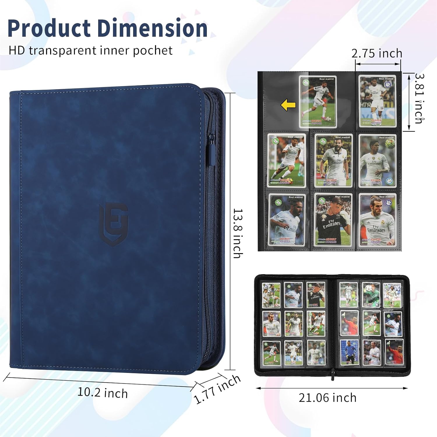 - DETAILED DESIGN:The card binder is made of premium PU leather, water or raindrops will not penetrate, different colors of the trading card binder with different colors of the zip, to meet your personalised needs. Side card pocket prevents cards from spilling out and protects your cards from fading and staining