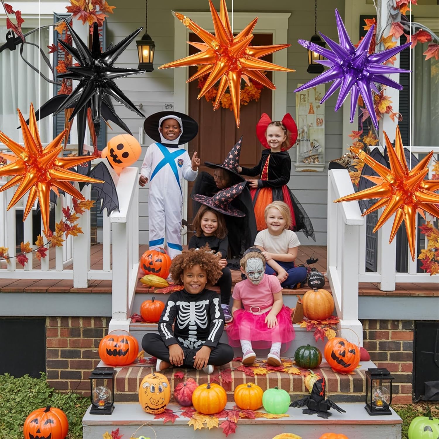 - Black Purple Orange Star Balloons Set:Package include 9pcs 22Inch explosion star balloons(black x 3,purple x 3,orange x 3).Large enough to help you better decorate your party.