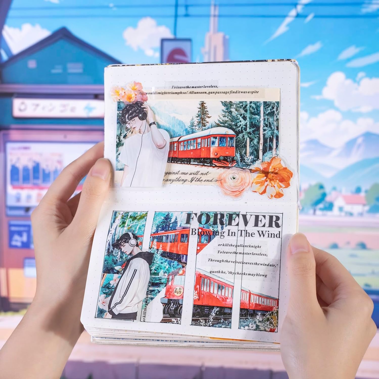 - Train Scenery Designs: 6 unique rolls feature colorful train and landscape illustrations adding a storytelling touch to travel journals scrapbooks and memory albums for creative projects with vivid seasonal charm