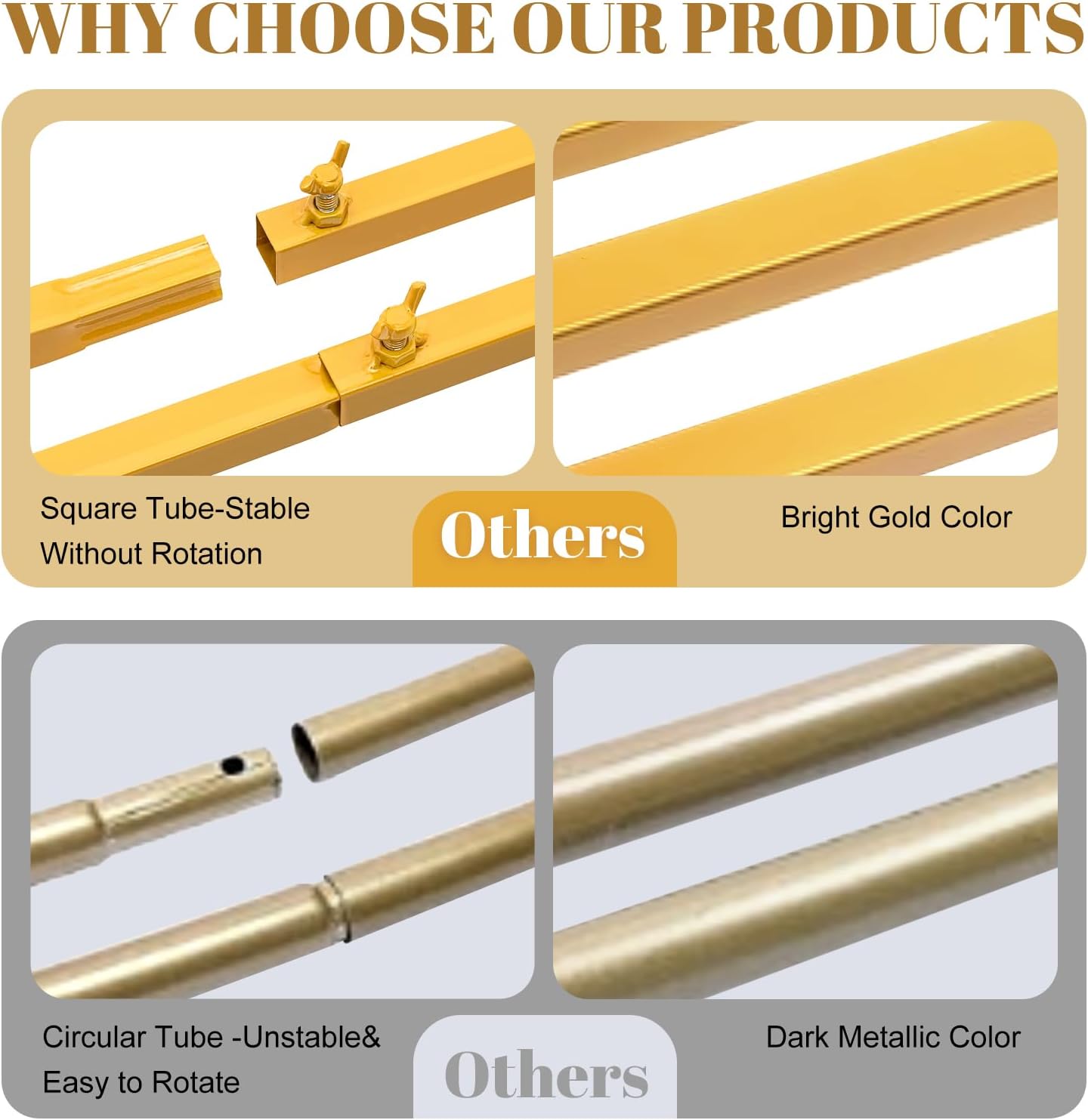 Gold Wedding Arch Backdrop Stand, 6.6FT x 6.6FT Square Arch Stand Gold Metal Balloon Arch Stand for Ceremony Party Birthday Party