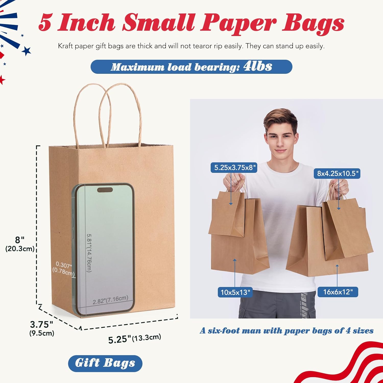 - Versatile Kraft Paper Bags: Small gift bags with handles measure 5.25x3.75x8 inches in bulk 200pcs. Mini gift bags work as shopping bags, party favor bags, retail bags, welcome bags and merchandise bags. Small gift bags bulk also are a popular choice among many retailers