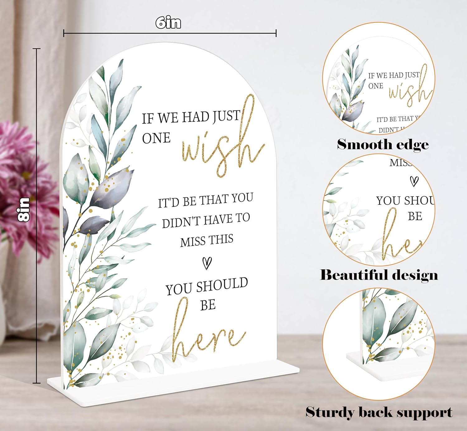 Acrylic Wedding Signs, Greenery Theme You Should Be Here, Memorial Table Sign for Wedding, Bridal Shower Table Decor with Stand, Engagement, Anniversary, Newlywed Events and Parties Supplies, 22