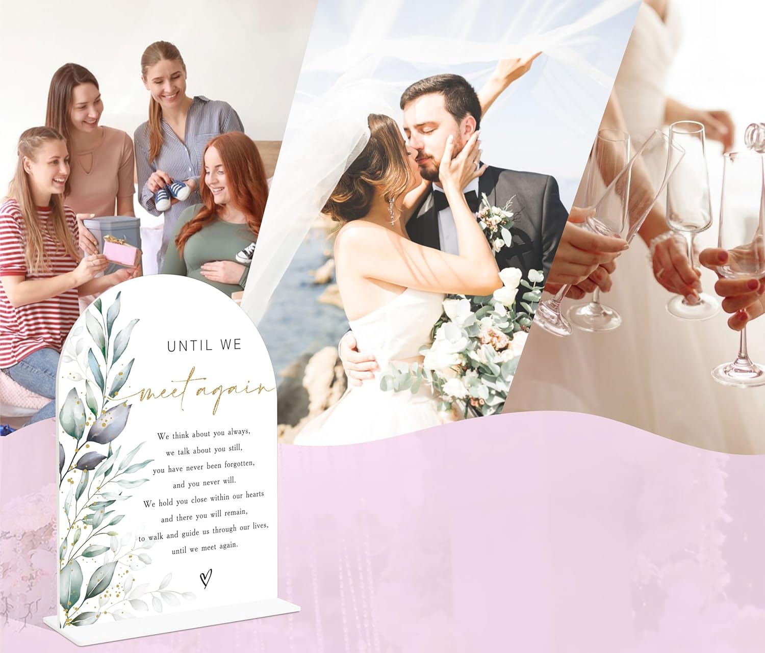 Acrylic Wedding Signs, Greenery Theme Until We Meet Again, Memorial Table Sign for Wedding, Bridal Shower Table Decor with Stand, Engagement, Anniversary, Newlywed Events and Parties Supplies, 24