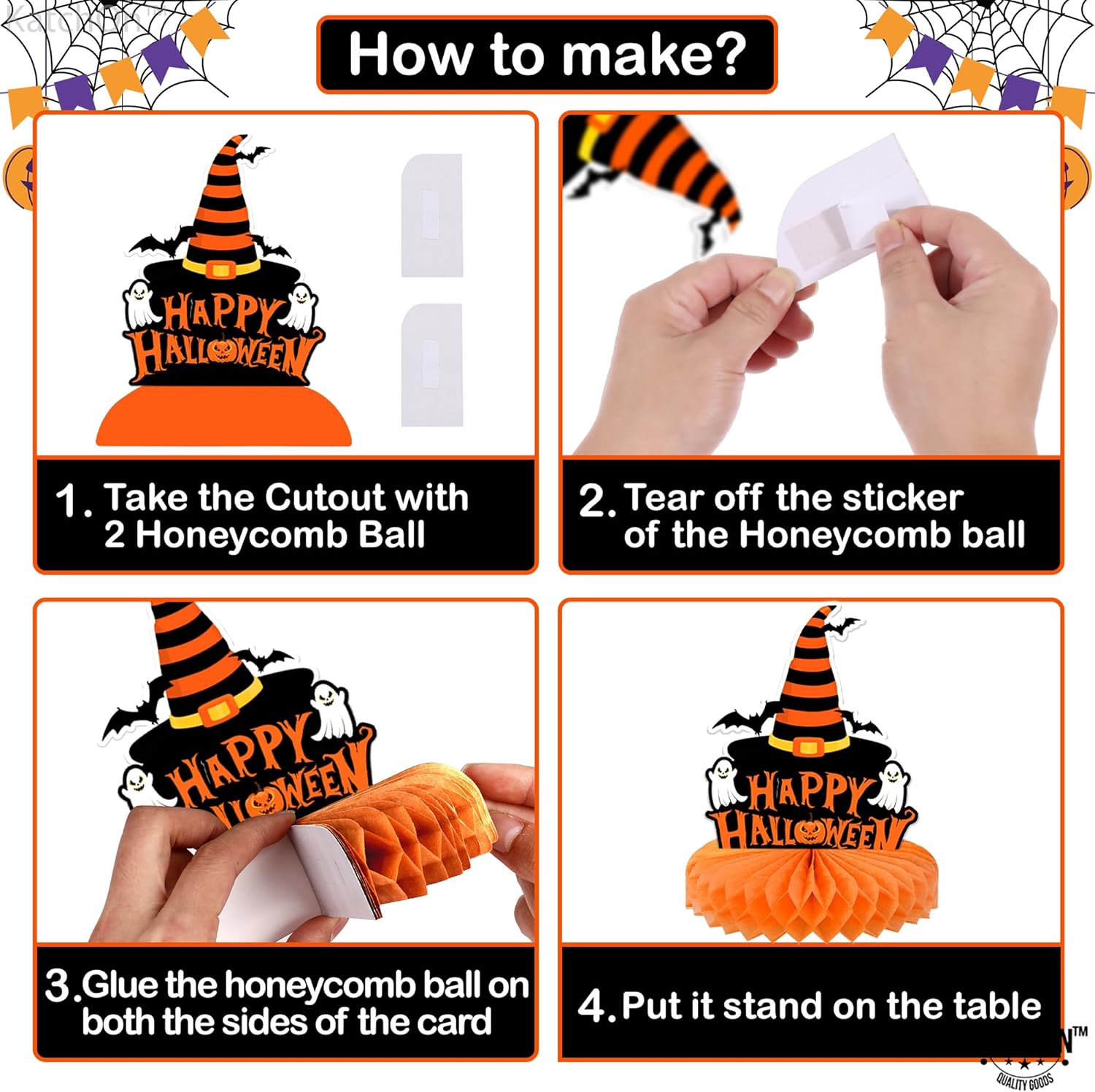 - PACK OF 9 | WITCHES HALLOWEEN HONEYCOMB CENTERPIECES : Get ready to elevate your Halloween party to new heights with our exquisite Halloween Pumpkin Honeycomb Centerpieces. They come in Standard Pack of 9, charming and versatile happy halloween decorations indoor are the perfect addition to your table, creating an enchanting ambiance for your guests. Let's dive into the magical world of these eye-catching halloween table centerpieces. Perfect halloween table top decorations