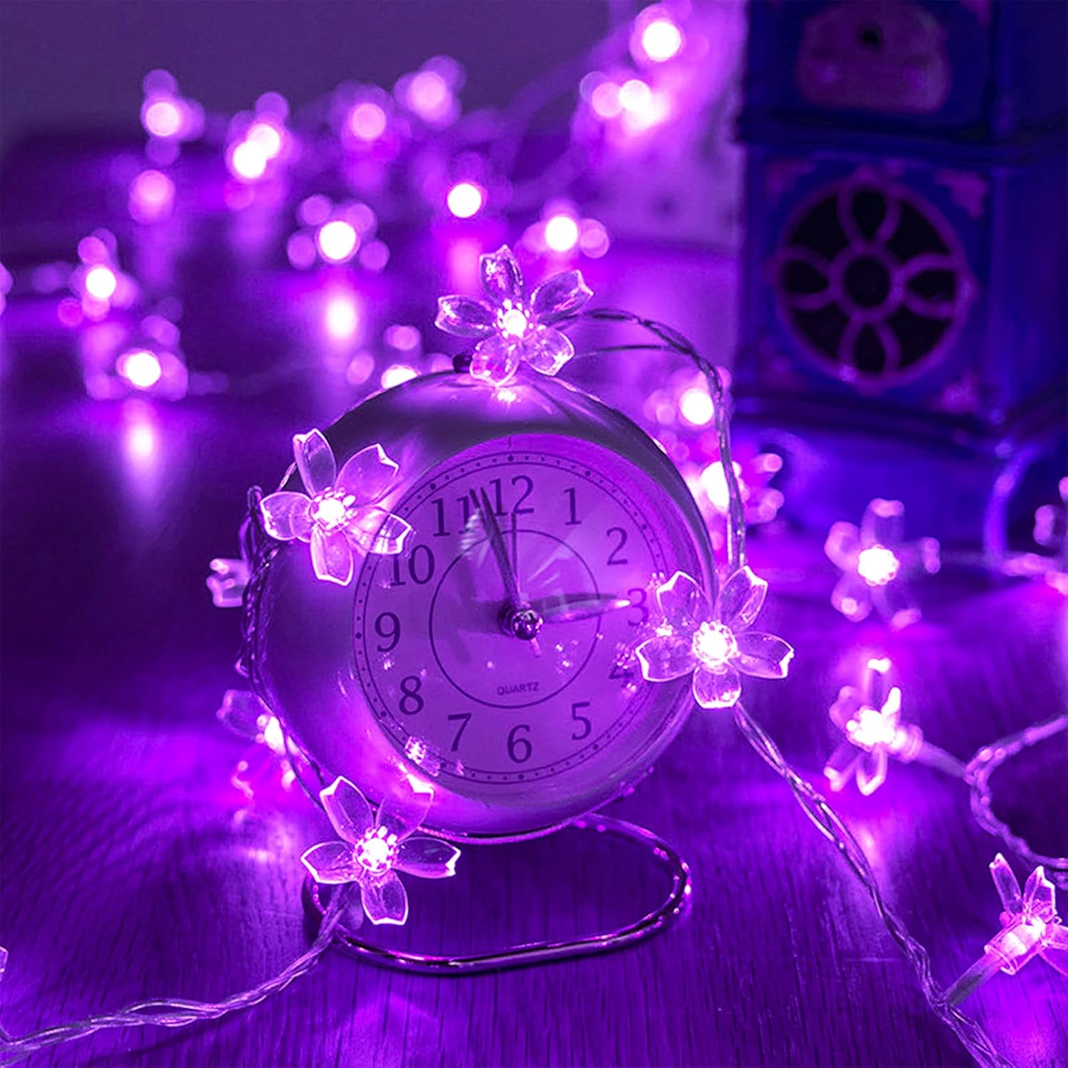 Cute Flower String Lights, USB & Battery Lighted Decorative Fairy Cherry Blossom Indoor Bedroom Tree Branches Hanging, Novelty Floral Lamp for Christmas Easter Wedding Party Birthday Decor (Purple)
