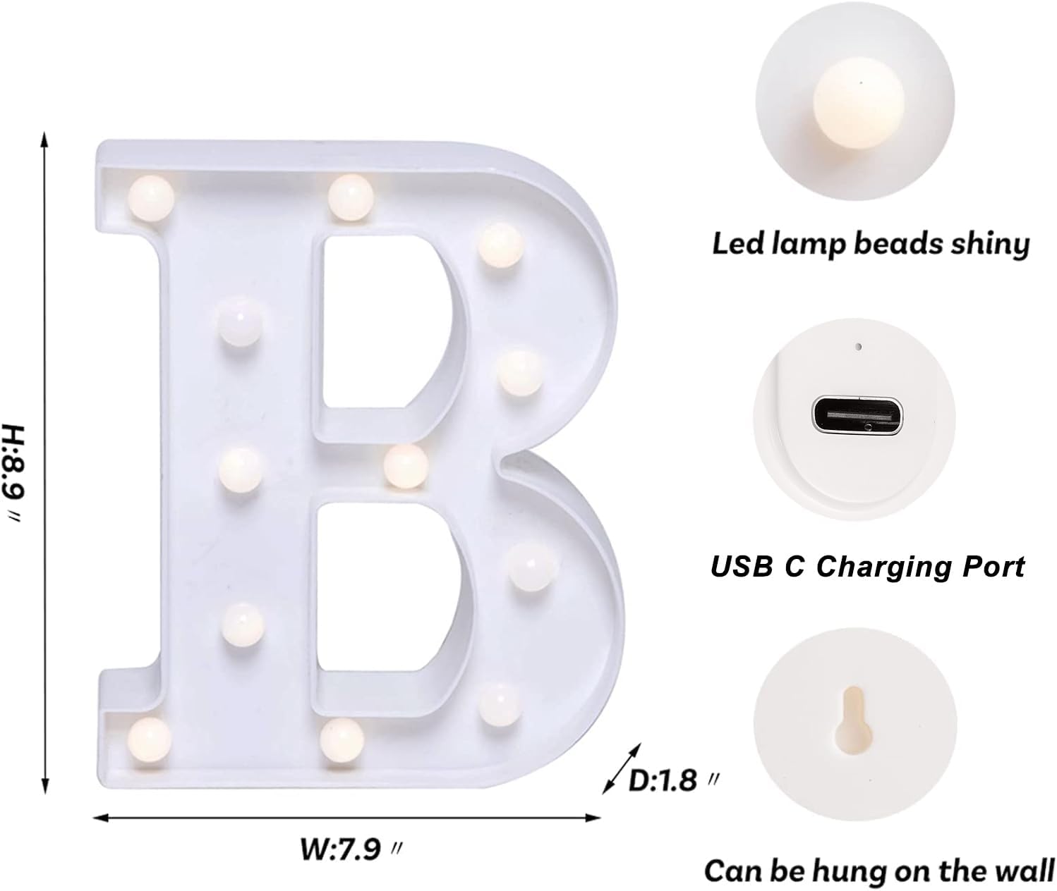 Foaky Rechargeable LED Letter Lights Sign Marquee Light Up Letters Sign for Night Light Wedding/Birthday Party Christmas Lamp Home Bar Decoration (B)