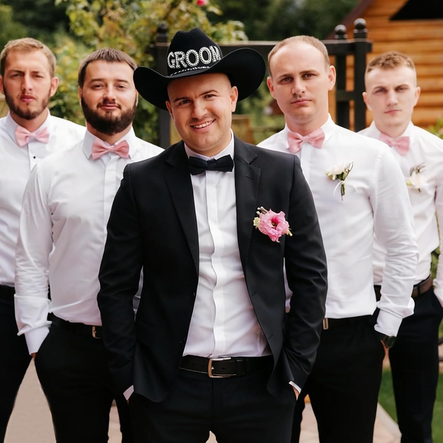 - Sparkling Cowboy Hat: The [Bride] and [Groom] letters consists of lustrous faux pearls and exquisite rhinestone embellishments, the delicate veil adds a romantic touch, will make the bride shine and easily win the compliments of the whole party