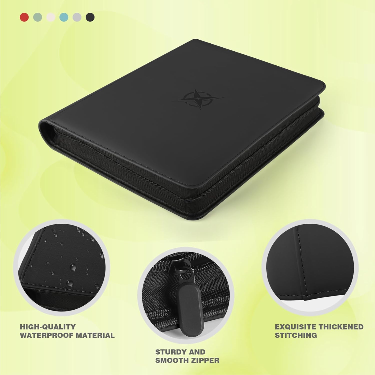 - Premium Zipper Closure for Extra Safety:Premium zipper closure provides added security This card collection binder comes with a premium, smooth zipper that protects against dust, moisture and accidental spills, ensuring that your cards and baseball binder remain intact.