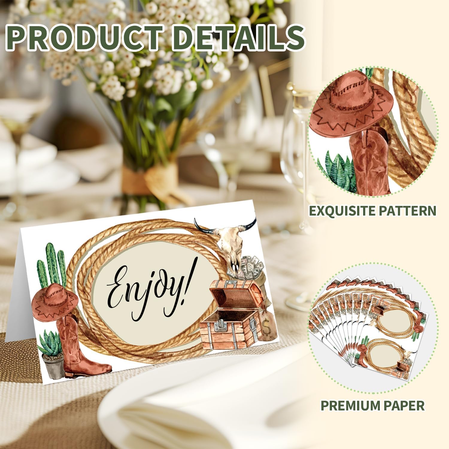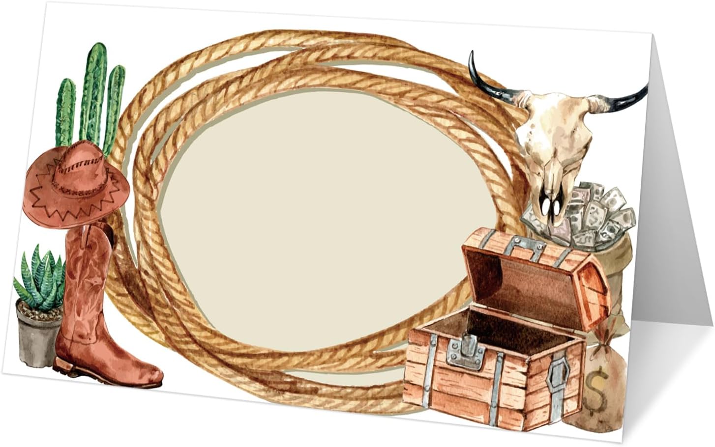 25 Western Cowboy Place Cards for Table Seating, Birthday Name Place Card, Tent Cards for Baby Shower Reception Dinner Party Decorations -A30