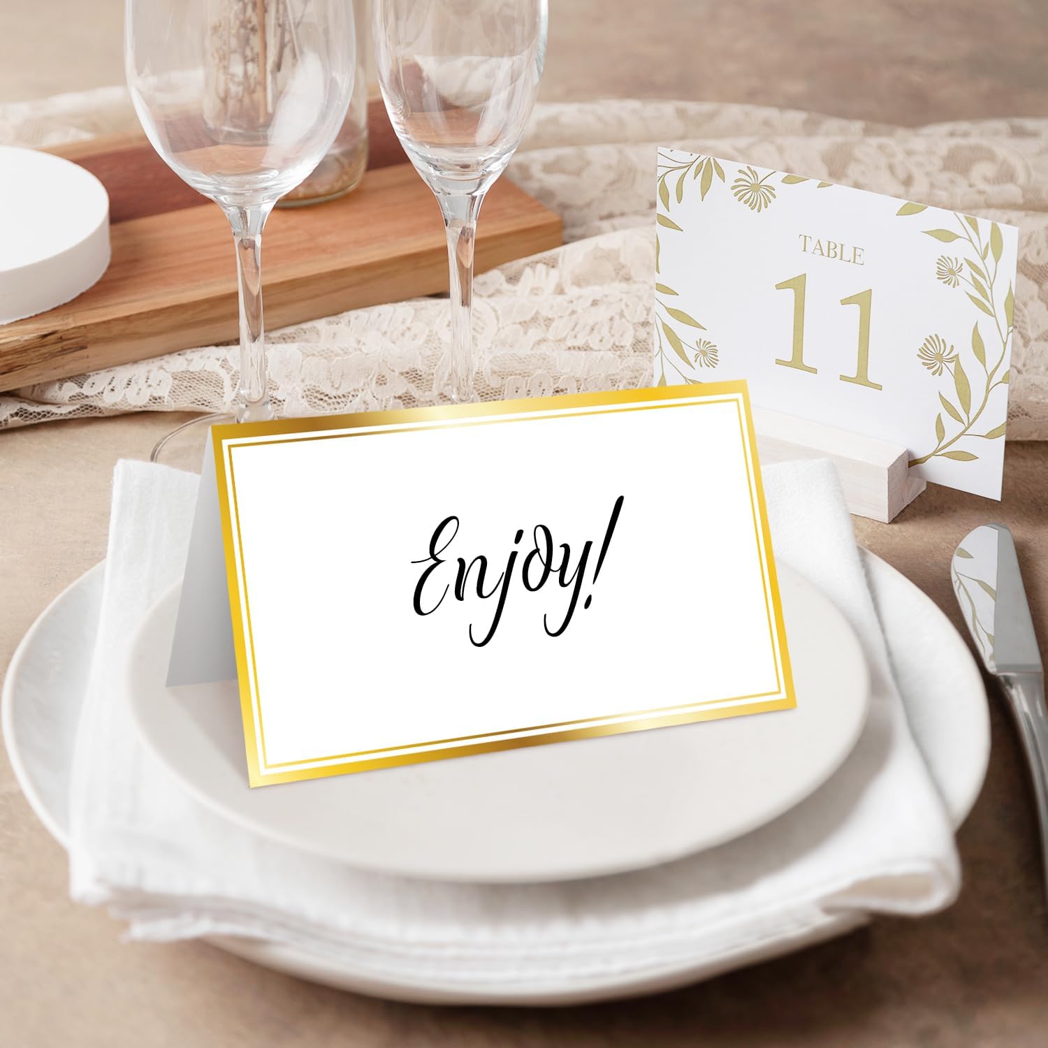 25 Premium Place Cards for Table Seating, Wedding Name Place Card with Gold Border, Tent Cards for Birthday Bridal Shower Baby Shower Reception Dinner Party Decorations -A19