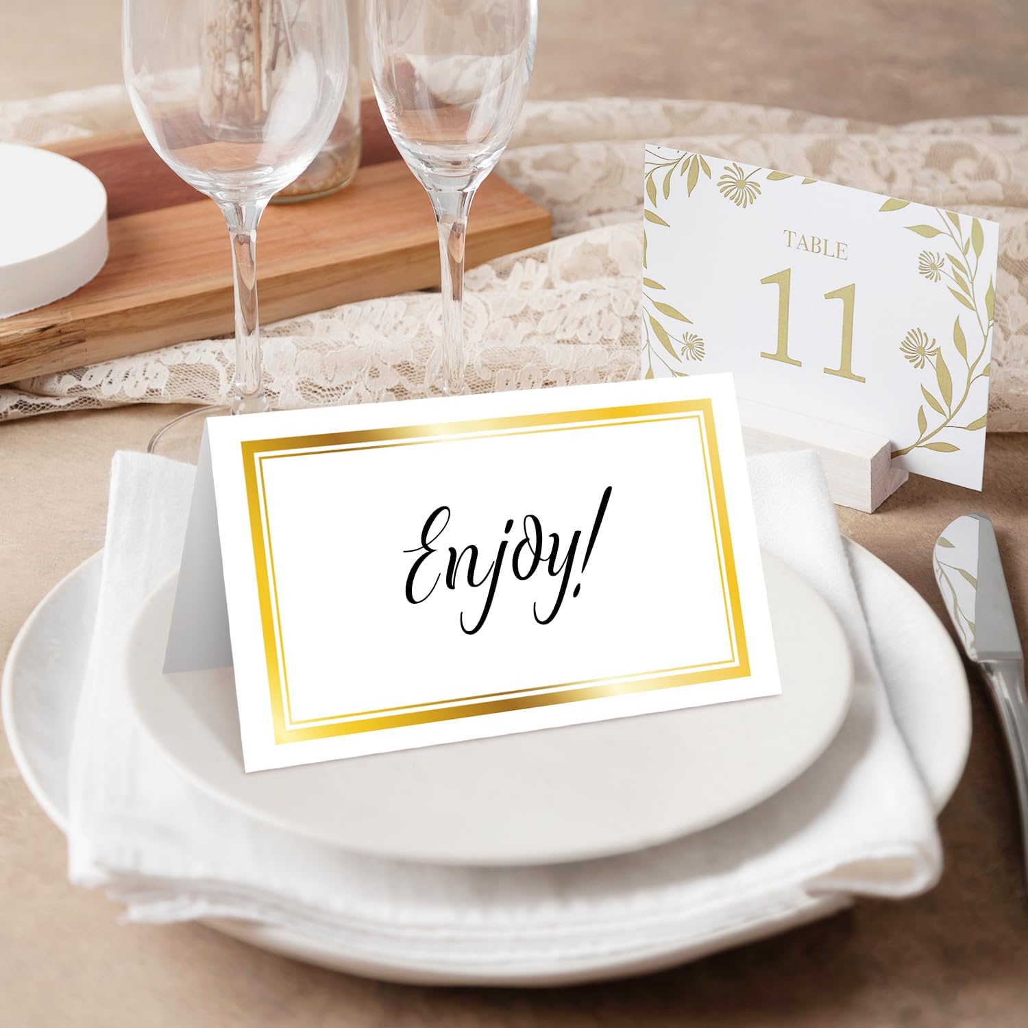 25 Premium Place Cards for Table Seating, Wedding Name Place Card with Gold Foil Border, Tent Cards for Birthday Bridal Shower Baby Shower Reception Dinner Party Decorations -A29