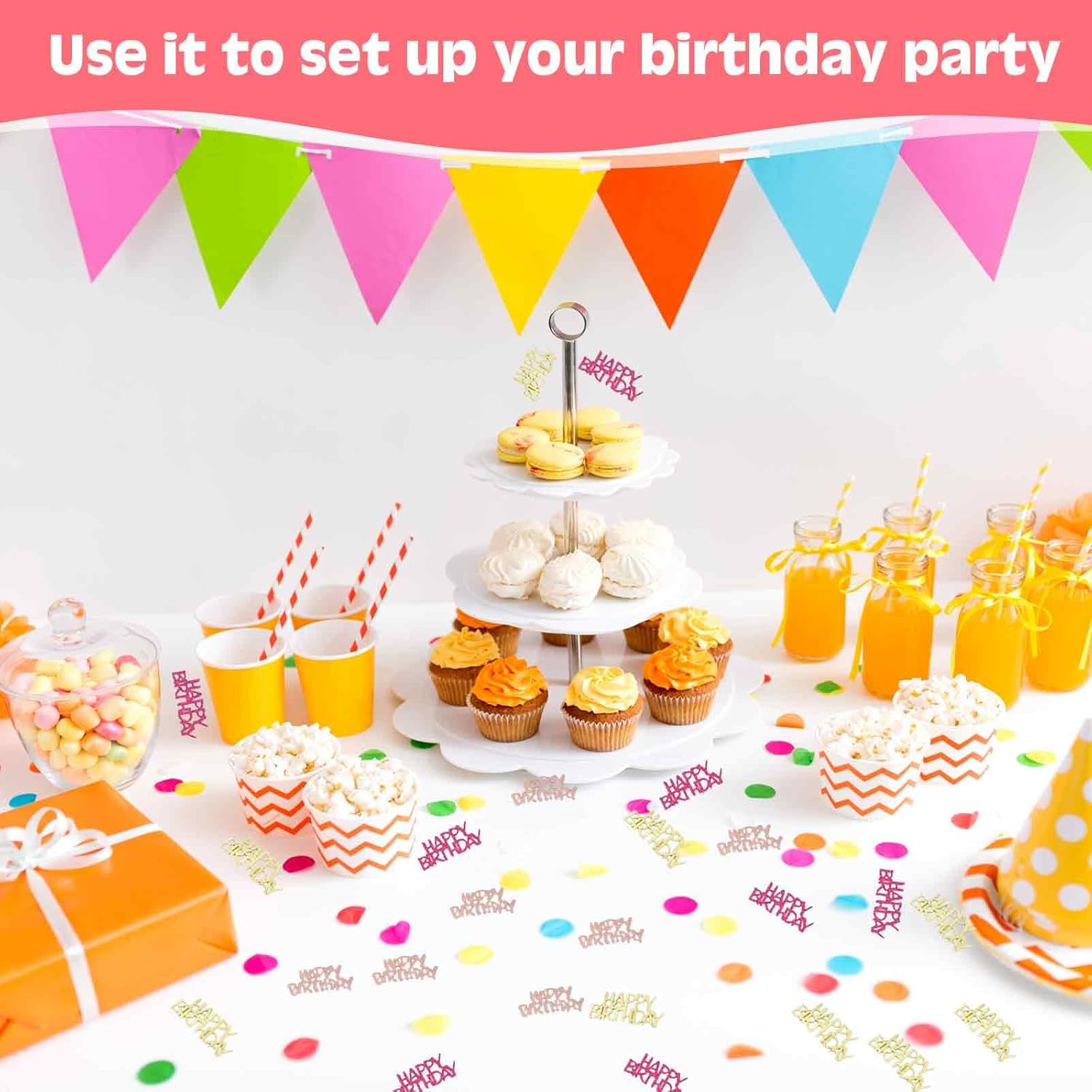 - Themed Birthday Design: Adorned withHappy Birthday patterns, perfectly matching all birthday themes and adding charm to tables, cakes, or gift displays