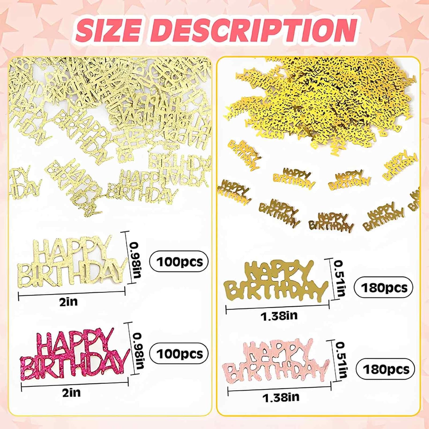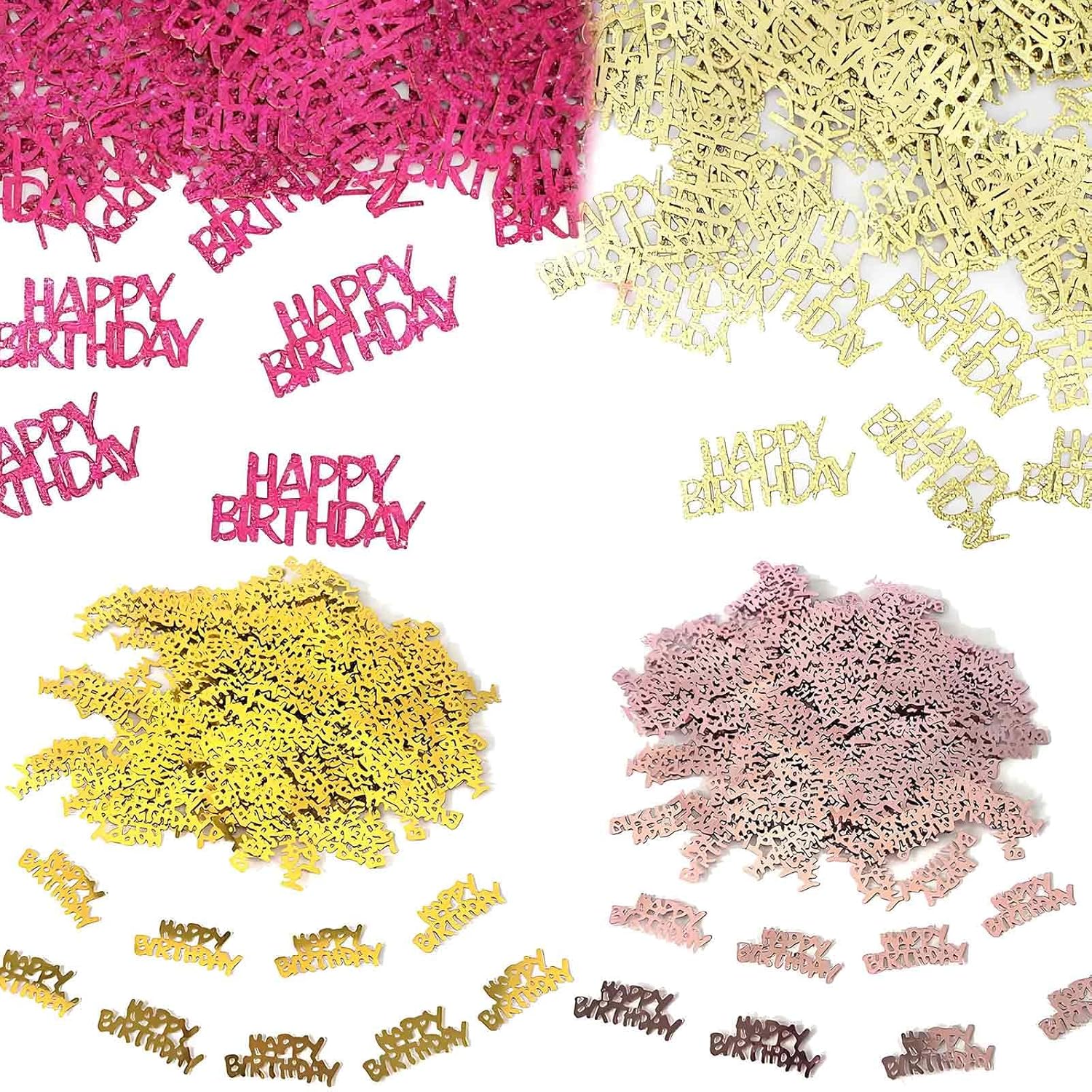 560 PCS Glitter Happy Birthday Confetti, Rose Gold Table Decorations, Iridescent Metallic Foil for DIY Crafts Festive Table Decoration