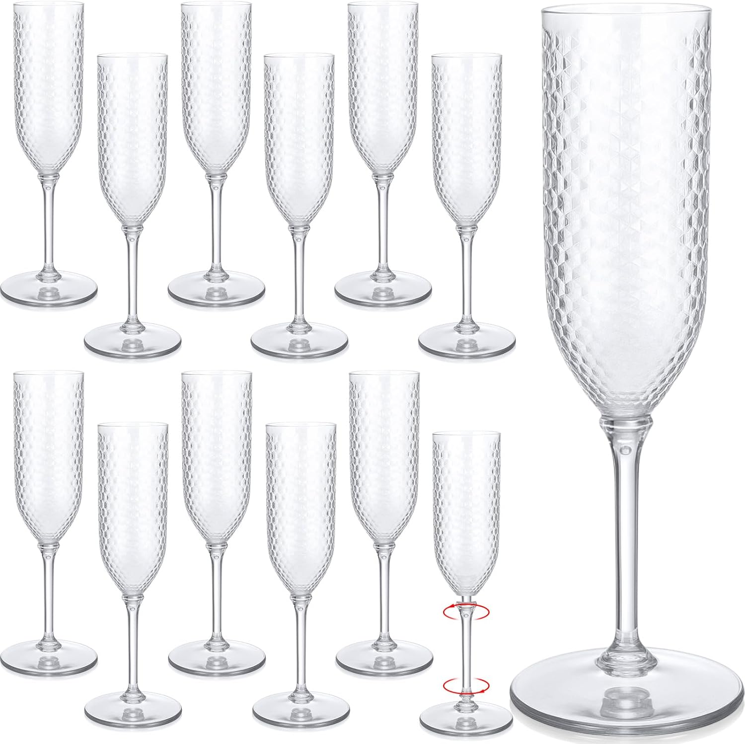 - 24 Pack for Elegant Entertaining: Serve your guests in retro style with this 24-pack of 5.5 oz plastic champagne flutes; Each champagne cup measures approximately 2.87 x 8.43 inches, offering just the right size for mimosas, bubbly, or sparkling water; Ideal for weddings, New Year's Eve, or birthday party, this set adds a stylish sparkle to any celebration