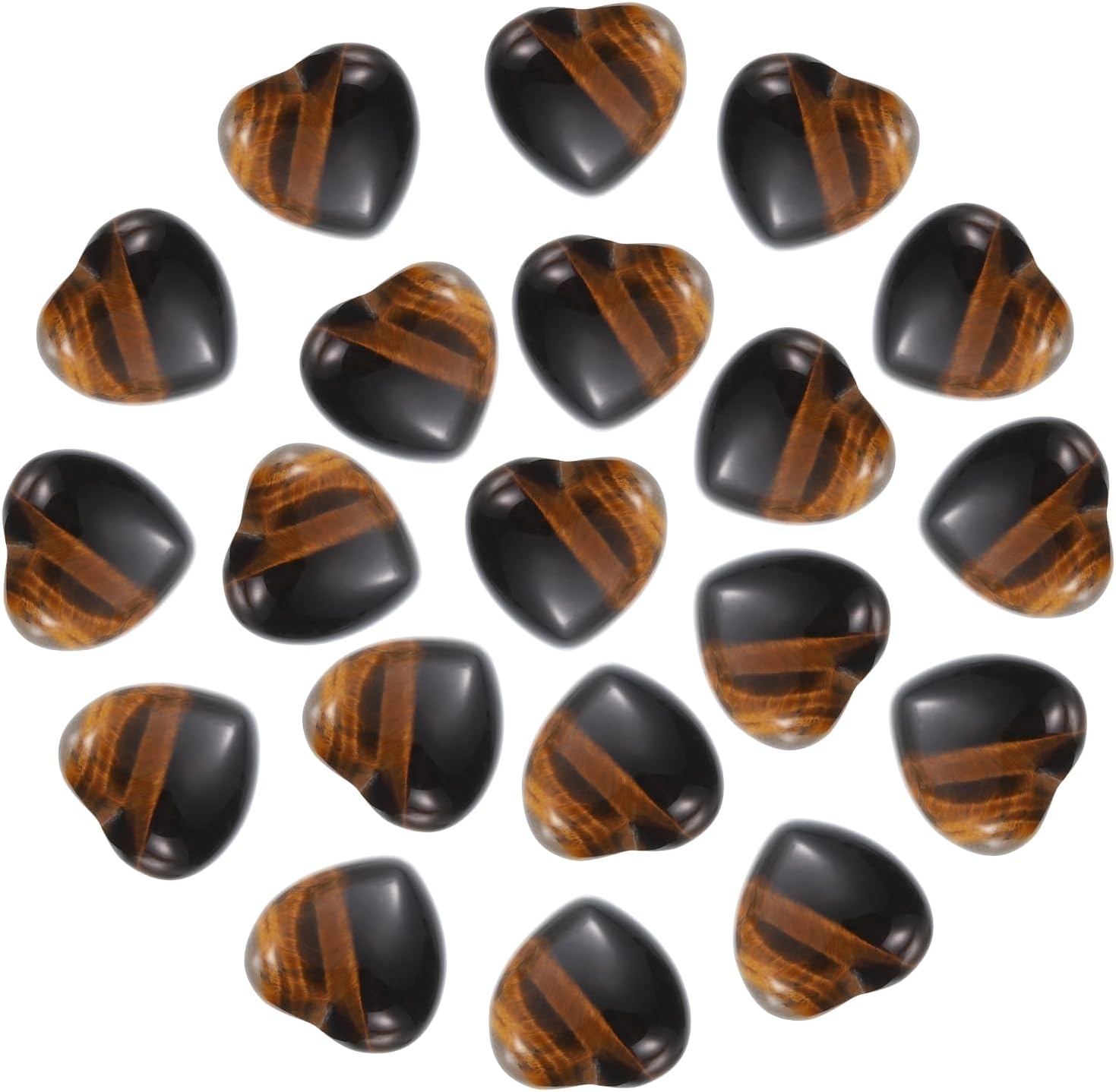 PATIKIL 20 Pcs Natural Heart Shaped Crystal Stone, 0.6 Inch Mini Polished Love Gemstone Crystal, Pocket Rock Engraved Worry Stones for Women Gifts Meditation, Yellow Brown
